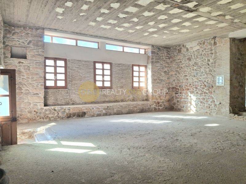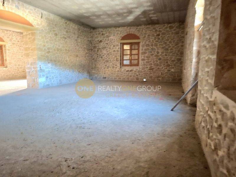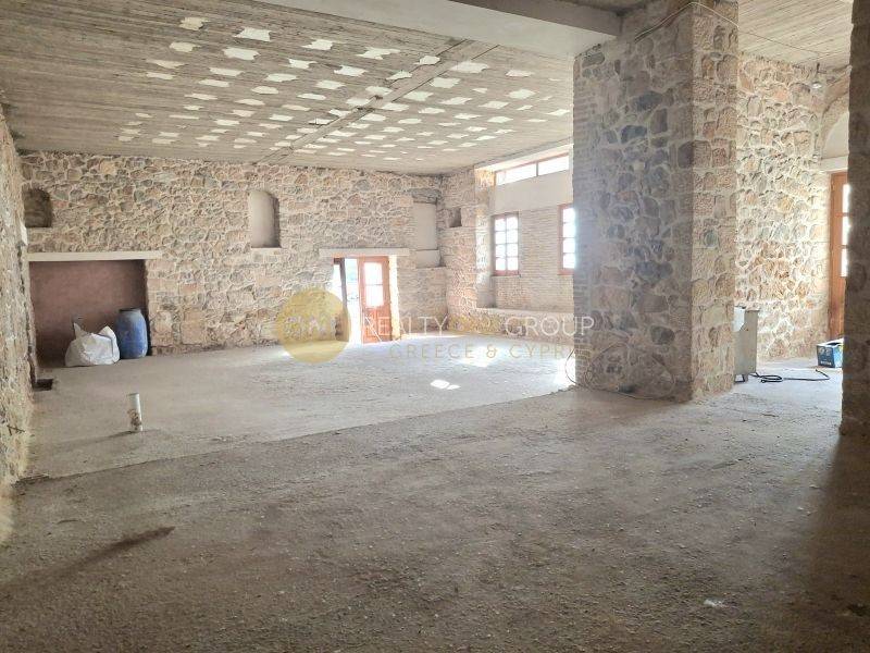 Σε ένα εκτεταμένο ιδιωτικό οικόπεδο 2800 τ.μ., το οποίο περιβάλλεται από περίφραξη με γκαραζόπορτα, αναπτύσσεται ένα μοναδικό πέτρινο διατηρητέο σύνολο κτισμάτων συνολικής επιφάνειας περίπου 1.500 τ.μ., σπάνιας αισθητικής και αρχιτεκτονικής αξίας.Το ακίνητο αποτελείται από τρία ανεξάρτητα αλλά αρμονικά δεμένα μεταξύ τους πέτρινα κτίσματα, που αναδεικνύουν την αυθεντικότητα της παραδοσιακής λιθοδομής σε όλους τους εσωτερικούς και εξωτερικούς χώρους. Η πέτρα παραμένει εμφανής, δημιουργώντας αίσθηση διαχρονικότητας, στιβαρότητας και υψηλής αισθητικής.Το κεντρικό κτίριο αναπτύσσεται σε τρία επίπεδα – ισόγειο, πρώτο και δεύτερο όροφο – τα οποία συνδέονται με ευρύχωρη εσωτερική σκάλα, λουσμένη στο φυσικό φως από τα μεγάλα ανοίγματα. Οι χώροι είναι γενναιόδωροι, φωτεινοί και αέρινοι, με άμεση πρόσβαση στο πρώτο επίπεδο σε μεγάλη βεράντα και στο δεύτερο επίπεδο καταλήγοντας σε σκεπή, προσφέροντας μοναδικές δυνατότητες φιλοξενίας εκδηλώσεων ή διαμορφώσεων προβολής.Τα δύο επιπλέον πέτρινα κτίσματα είναι ισόγεια με σκεπή και διατηρούν αναλλοίωτο τον αυθεντικό χαρακτήρα της κατασκευής, προσφέροντας ιδανικούς ενιαίους χώρους για εκθεσιακή χρήση, εικαστικές εγκαταστάσεις ή λειτουργικούς πολυχώρους. Εντός του οικοπέδου υπάρχει επιπλέον ανεξάρτητος, διαμορφωμένος χώρος γραφείου με μπάνιο, καθώς και χώροι υπνοδωματίων για την εξυπηρέτηση προσωπικού ή φιλοξενούμενων, προσδίδοντας πλήρη αυτονομία και λειτουργικότητα στο σύνολο.