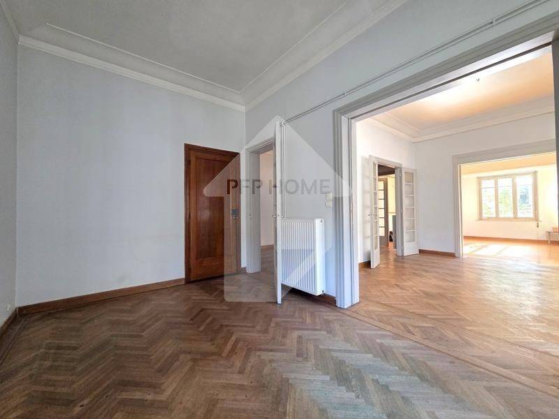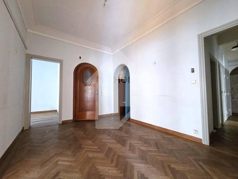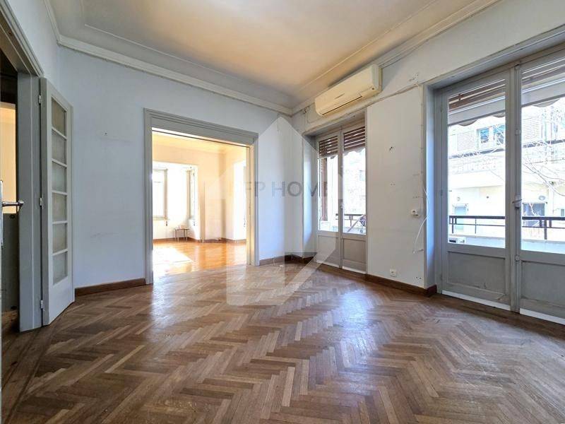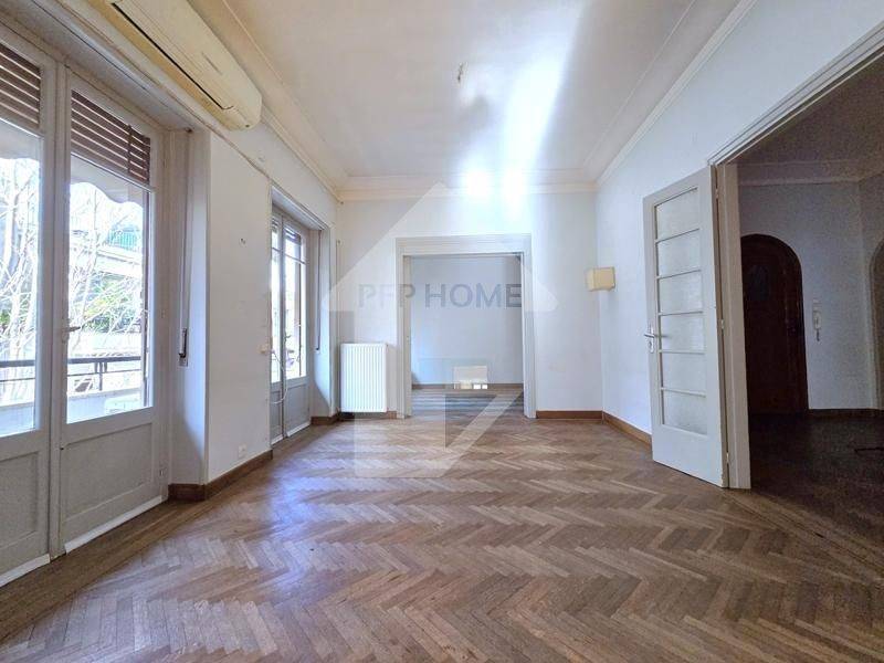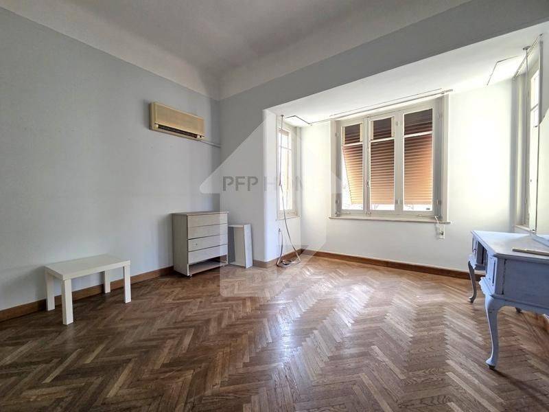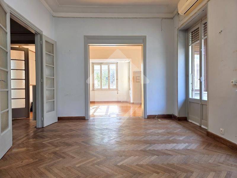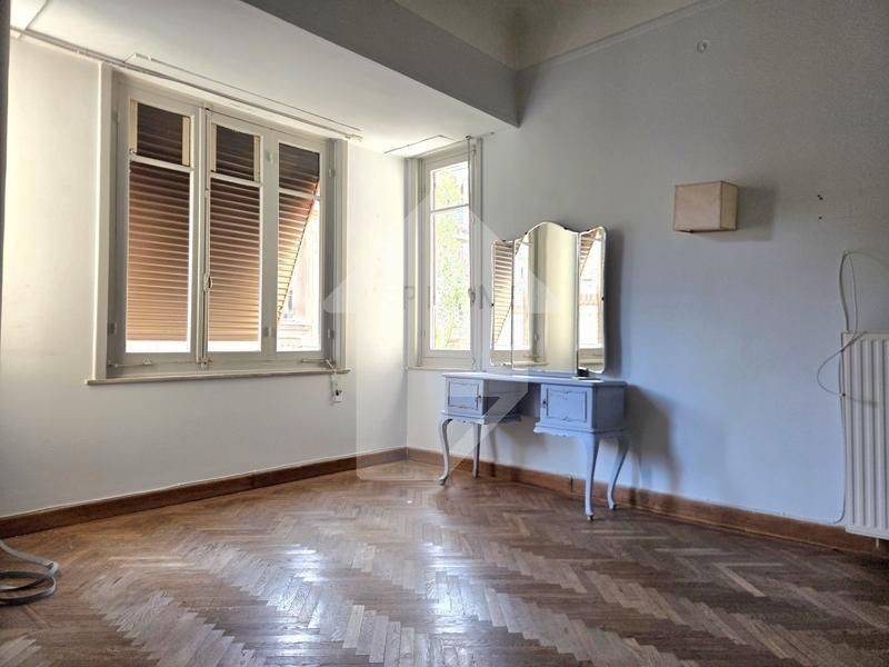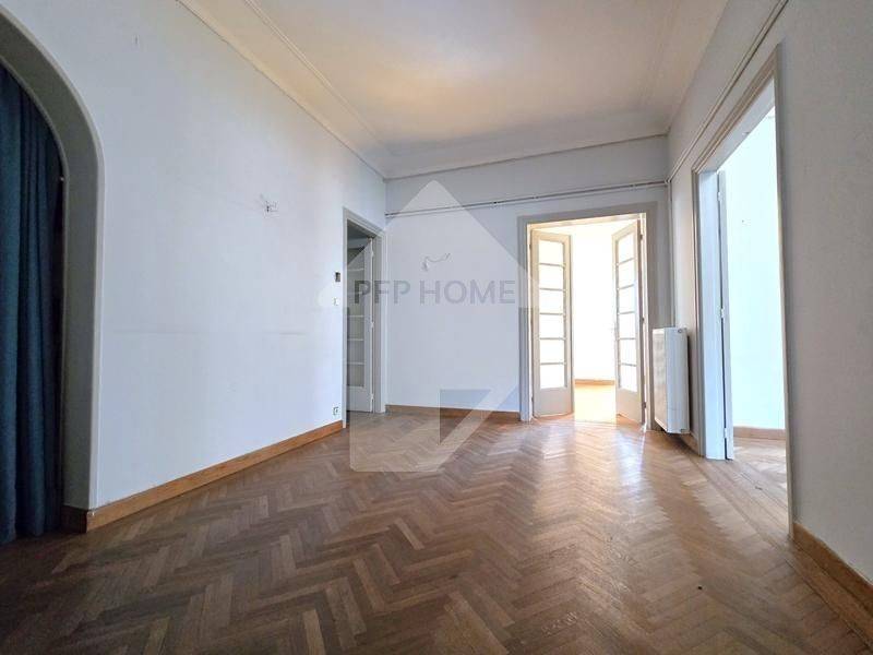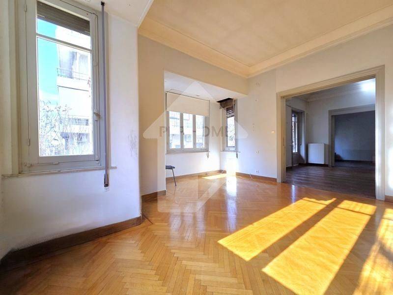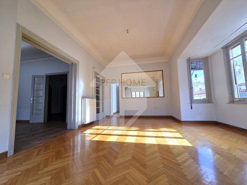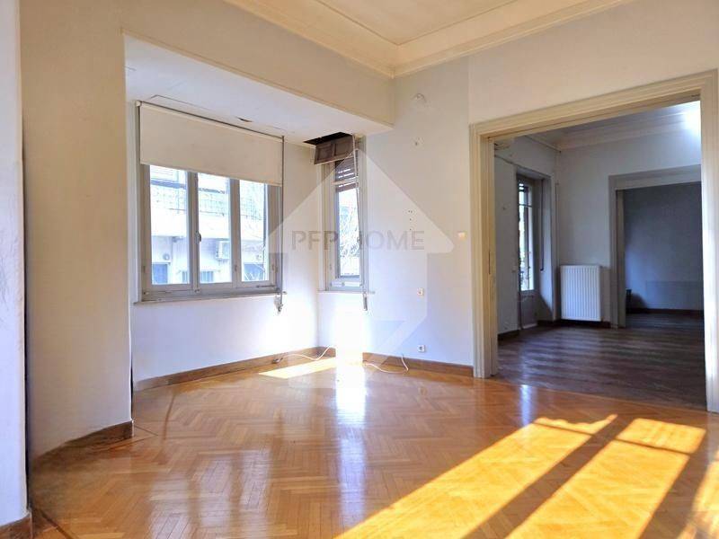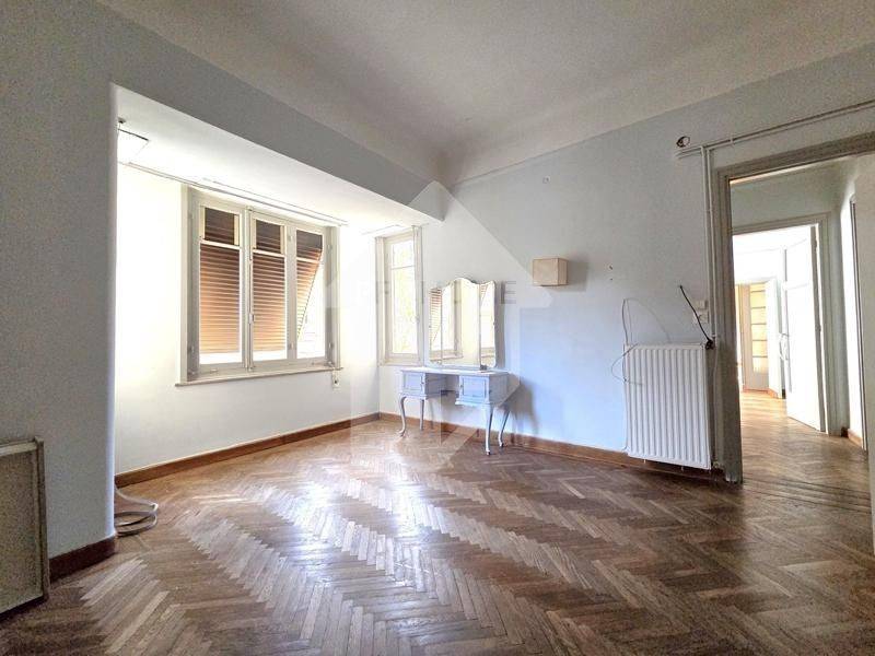 Mousio - Polytechnio - Floor Apartment 162sqm unfurnished, bedrooms 4, levels 1, 3rd, very good condition, year built 1933, energy class G, living room, hall, kitchen, bathroom, heating type: individual unit (oil), quiet, dual aspect apartment, luminous, corner, frontage, storage space 3sqm, balconies, tents, wooden frames, wood floors, separate kitchen, without common charges, service room, within city plan, residential zone, south-western orientation, access from asphalt, commercial use, close to park (up to 200m), close to entertainment (up to 500m), close to metro/train (up to 500m), close to university/college (up to 500m).