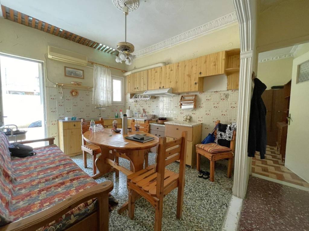 Opposite the Perama Municipal Stadium and in close proximity to Eirinis Avenue, within a classic two-unit residential building, an 80 sq.m. elevated ground-floor apartment is offered for sale. The property benefits from a 35 sq.m. private rear courtyard for exclusive use, as well as a shared front courtyard. The apartment comprises two spacious bedrooms, a generous living/dining area, a large kitchen, and a large bathroom. Its layout allows for flexible reconfiguration and redistribution of spaces, making it particularly suitable for renovation or redesign. The front elevation features aluminium window frames with double glazing, while the property is also equipped with a security entrance door and air-conditioning units. This is an attractive property with strong potential, located in a quiet, family-friendly neighbourhood with nearby schools, local supermarkets, and other neighbourhood amenities. The central market of Perama is within easy walking distance. No calls from real estate agents, please.