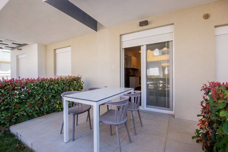 It consists of 1 bedroom, an open-plan living room with kitchen, and a bathroom. The property was built in 2020, has an energy efficiency class B+, and features heating via air conditioning, aluminum window frames, tiled floors, and accessibility for people with disabilities (AMEA). Additional features include a garden, swimming pool, A/C, electrical appliances, awnings, insect screens, double-glazed windows, and a solar water heater.