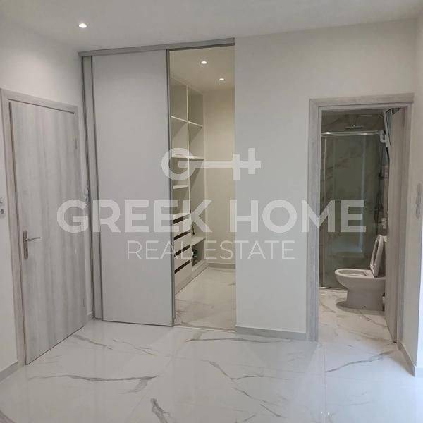 Alimos, Ano Kalamaki - Floor Apartment 119sqm unfurnished, bedrooms 3, 3rd, penthouse, fully renovated, year built 1985, renovation year 2025, energy class A, living room, hall, kitchen, 2 bathrooms, wc, heating type: autonomous (heat pump), air condition, parking covered, quiet, dual aspect apartment, luminous, sea view, frontage, electric roller shutters, storage space, solar heater, fireplace, balconies, large balconies, tents, elevator, aluminum frames, double glazed windows, door screen, ceramic tiles floors, separate kitchen, night electricity discount rate, secure door, luxurious, pets allowed, close to σχολείο (up to 0), close to αγορά (up to 0), close to μετρό/ηλεκτρικός (up to 0), close to στάση λεωφορείου/τρόλεϋ (up to 0), close to πάρκο (up to 0).