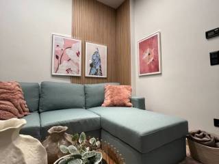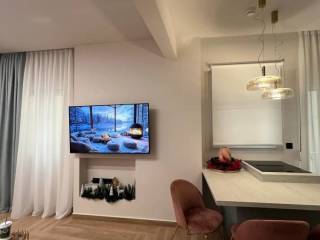 The property consists of two bedrooms, an open-plan living room and kitchen, and a bathroom. Additionally, it features an elevator, autonomous natural gas heating with underfloor heating, air conditioning, a security door, alarm system, electronic code lock, video intercom, a state-of-the-art extractor hood, concealed lighting, storage spaces under the bed and sofa, and an external entrance camera.