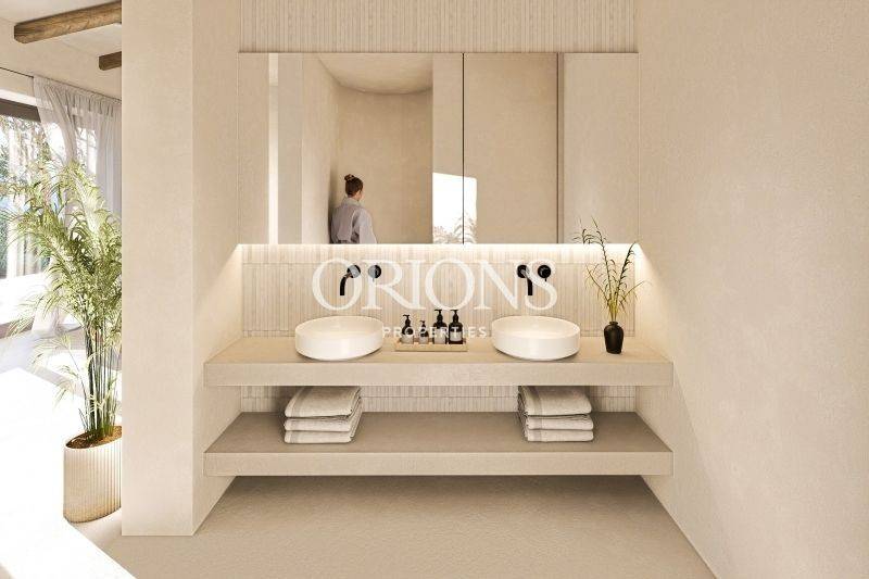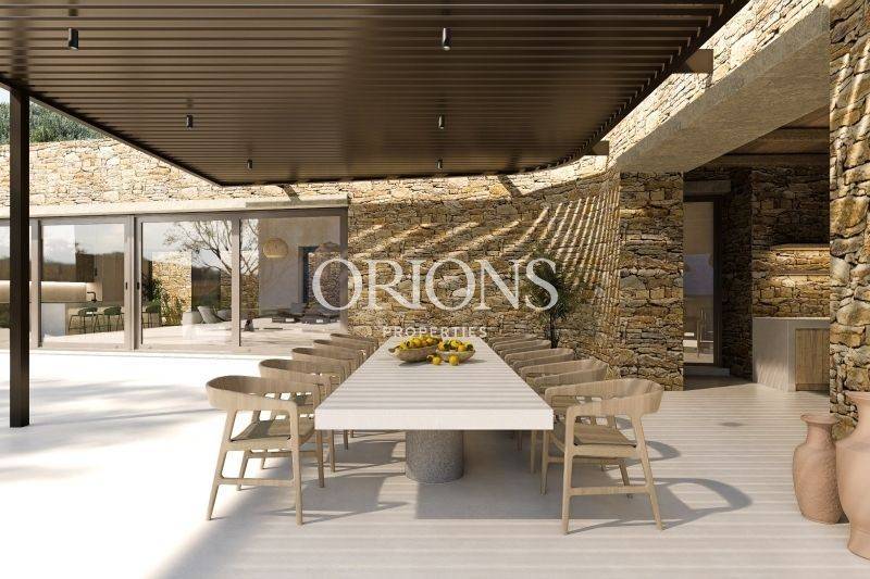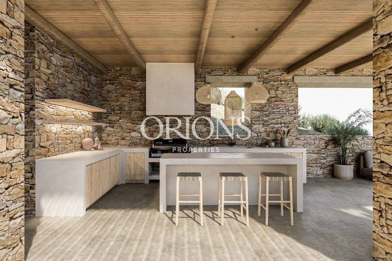 Outdoor spaces are designed for relaxed island living, with a private swimming pool, garden areas, and a dedicated BBQ zone for long summer days and evenings. The villa will be delivered furnished and fully equipped, including a heat pump, air conditioning, laundry room, electrical appliances and boiler, all executed with a high level of construction quality and attention to detail.