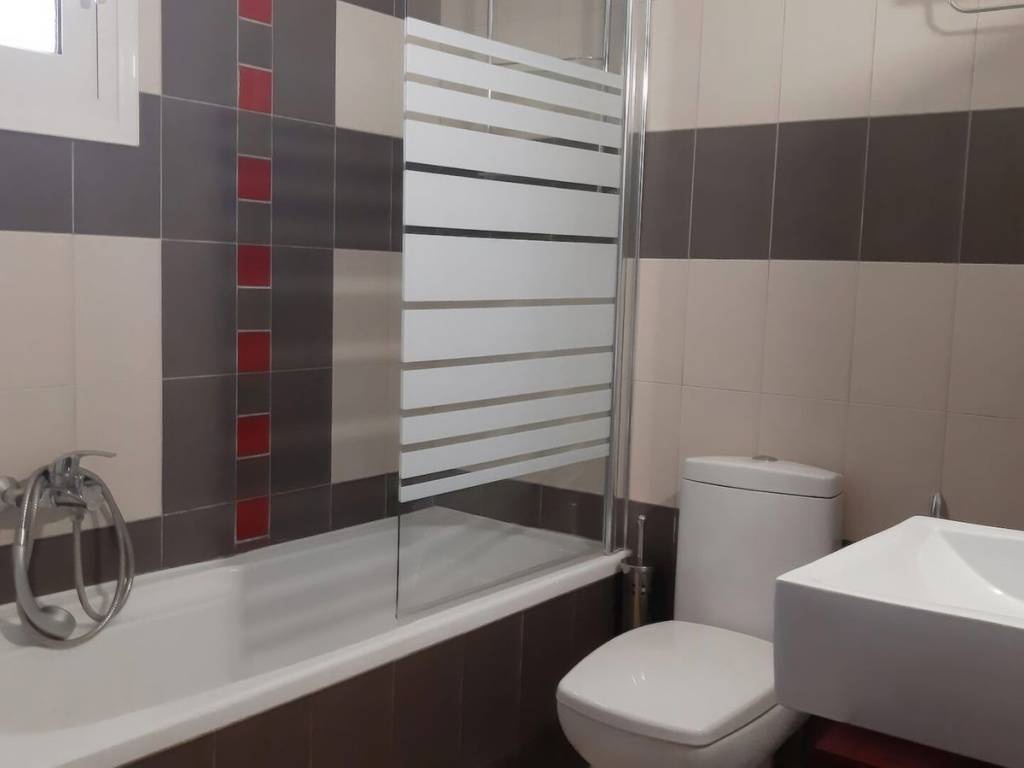 The 320 sqm residence is developed on a 420 sqm plot and offers 220 sqm of living and 100 sqm auxiliary spaces. The main house unfolds over three floors and provides a total of five bedrooms and three bathrooms, as well as a living room with an open-plan kitchen. The main living room on the ground floor and the master bedroom on the first floor are fitted with a fireplace, and there is autonomous diesel-powered heating on every floor. A solar panel boiler supplies hot water to the first two levels of the villa, while an electric boiler caters for the third.