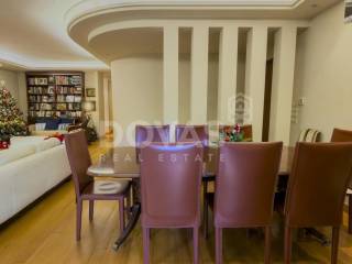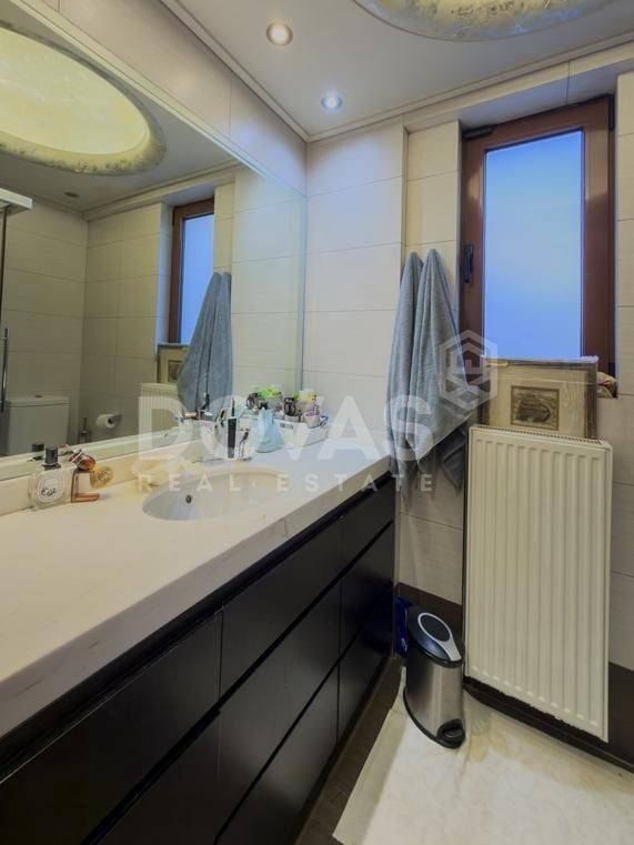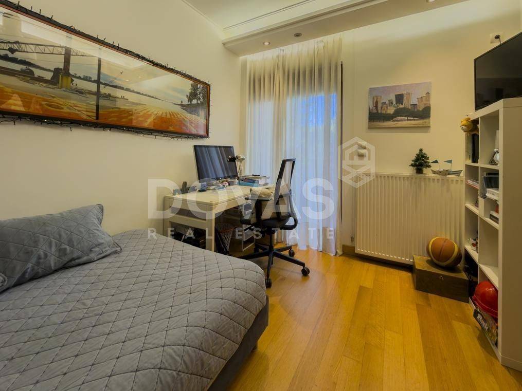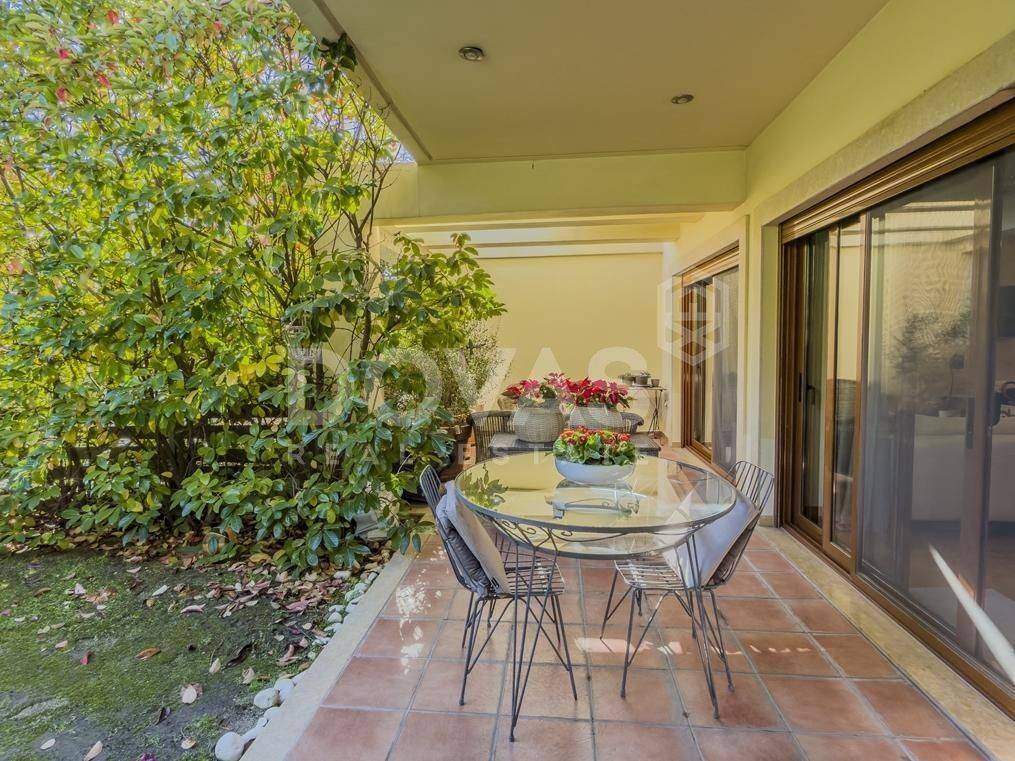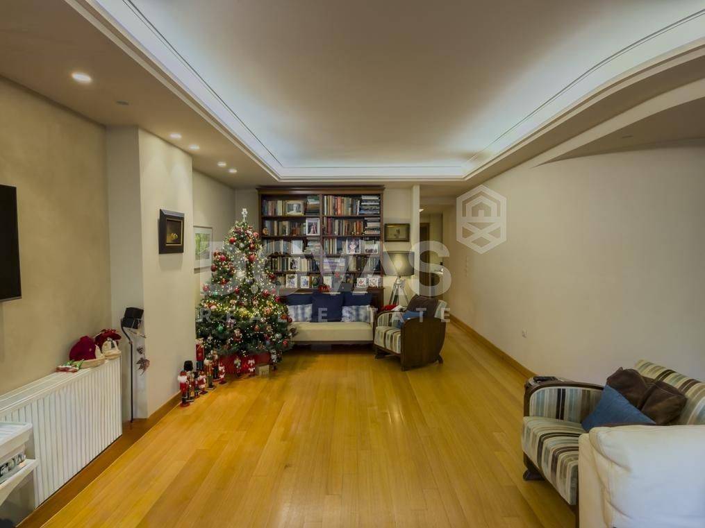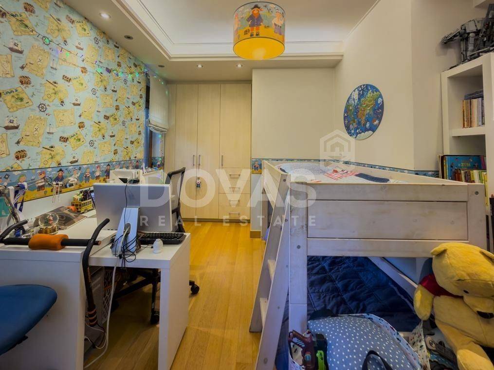 Kifissia, Nea Kifisia - Apartment 195sqm bedrooms 3, master bedroom, levels 2, semi-basement - ground floor, excellent condition, year built 2008, energy class C, living room, kitchen, 3 bathrooms, wc, heating type: autonomous (oil), parking covered, quiet, luminous, frontage, painted, storage space, boiler, fireplace, balconies, large balconies, garden, aluminum frames, double glazed windows, door screen, wood floors, handicap ramp, separate kitchen, three phase electricity, night electricity discount rate, secure door, alarm, video doorbell, luxurious, playroom, service room, laundry room, residential zone, eastern orientation.