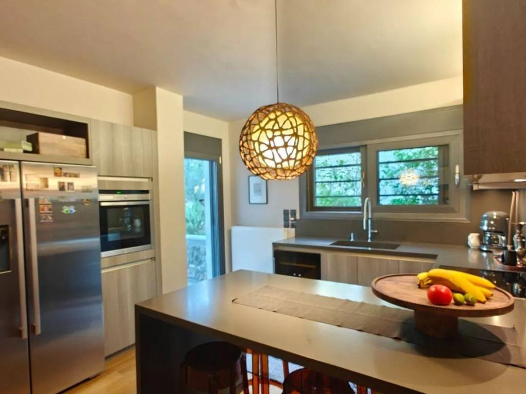 An excellent combination of quality and aesthetics, a luxurious detached house. Bright spaces with large openings and beautiful views of the lush garden and pool. Extremely comfortable and ergonomic spaces. Located in a convenient spot in the area, close to a bus stop and the exit to Marathon Avenue and Attiki Odos.