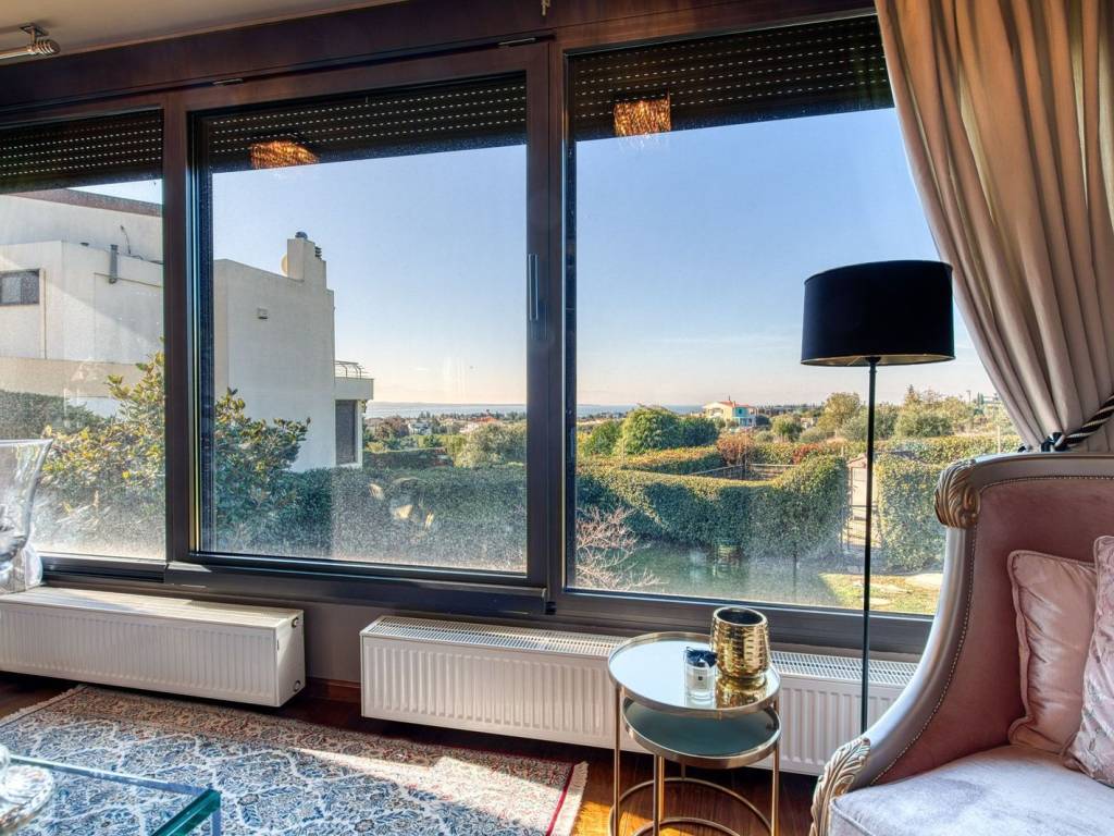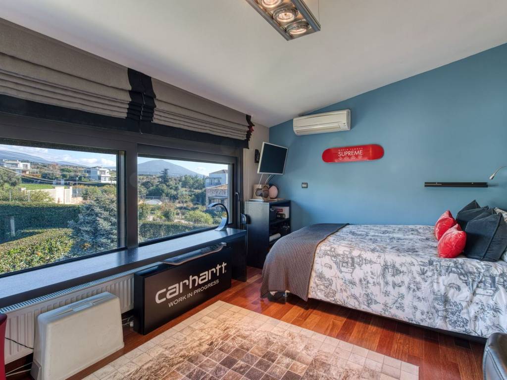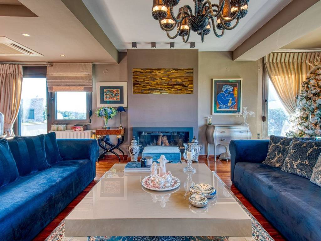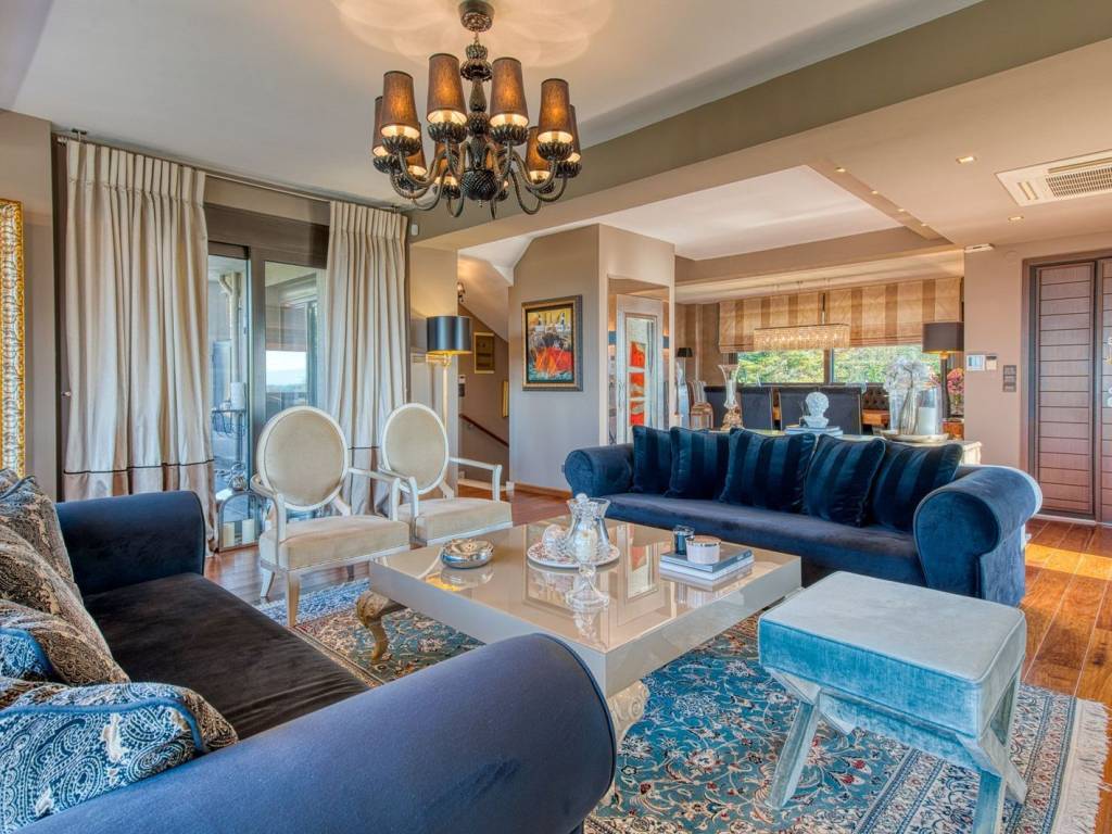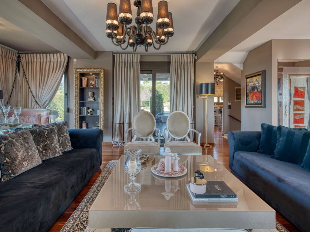 For sale, in the prestigious area of Panorama, this superb villa offers a rare combination of space, privacy and breathtaking views that stretch across the sea to the majestic Mount Olympus. Set on a generous 1,700 sq.m. plot, the residence unfolds over three levels and an attic, delivering 335 sq.m. of fully furnished living space designed for comfort and elegance. The villa features six bedrooms, four bathrooms and two bright open-plan kitchens and living areas, ideal for both family life and entertaining. The lower level is fully autonomous, providing excellent flexibility for guests, extended family or independent use. Warm wooden floors and impressive marble staircases enhance the timeless character of the interiors, while expansive openings allow natural light to flow freely and frame the unobstructed sea views. Built in 2007, the property is equipped with an autonomous heat pumb system, air conditioning, aluminum sliding window frames with double glazing, an armored security door, alarm system and a private elevator, ensuring comfort, safety and accessibility for all. Additional features include underground parking, an internal gym, ample storage areas, awnings, insect screens, modern electrical appliances and a flowing open-space layout connected by an internal staircase. Outdoors, a vast landscaped garden surrounds a spectacular 66 sq.m. swimming pool, creating an idyllic setting for relaxation and entertaining, while the private basketball court and the designed barbecue area adds a dynamic touch for leisure and family fun. With its panoramic views, refined amenities and prime location, this exceptional villa represents a unique opportunity to own a landmark residence in one of Panorama’s most sought-after settings. Location: Panorama is located at the east part of Thessaloniki, at the foot of Mount Chortiatis and at an altitude of 250 meters. Unique Features: Panorama, due to its amazing location as it is situated in a beautiful forest, with panoramic views of the entire Gulf of Thessaloniki, is considered one of the most privileged areas of the wider region, offering an abundance of residences of high standards and special aesthetics. The area also has its own municipal summer cinema, swimming pool and a gym of Olympic standards. Panorama has three public schools, a high school and many private schools of all levels. Accessibility: Panorama is just 14 km from the center of Thessaloniki. Public transport to the city center and to other areas is provided by bus line 58 of the O.A.S.TH. Investment Opportunity: Panorama maintains a high level of investment interest. It is a purely residential area of middle and high incomes, and in recent years there has been a significant increase in the construction of luxury housing and single-family homes, a result of the socio-economic development of the country until recently.