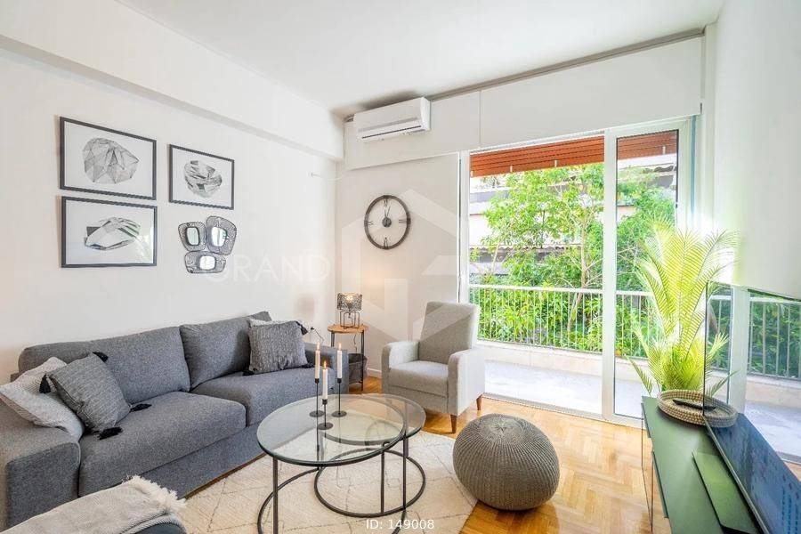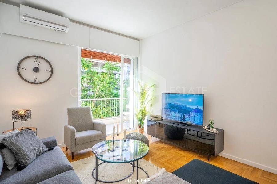 Kolonaki - Apartment 62sqm fully furnished, bedroom, levels 1, 1st, fully renovated, year built 1965, energy class C, living room, kitchen, 2 bathrooms, heating type: autonomous (electricity), air condition, dual aspect apartment, luminous, frontage, balconies, elevator, aluminum frames, double glazed windows, wood floors, secure door, within city plan, residential zone, south-western orientation, access from asphalt, close to metro/train (up to 200m), close to market (up to 50m).