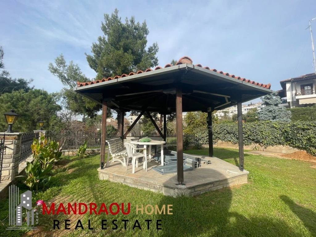 PANORAMA, LAW 751 – Detached House/Villa for Sale (270 sq.m.) A detached house/villa of 270 sq.m. is for sale in Panorama, specifically in the Law 751 residential area, in an excellent neighborhood with very easy access via asphalt road. This is an exceptional property, a high-quality construction built by a private owner who lived in the house until 2024. The plot covers 500 sq.m. and features a beautifully landscaped garden with lawn and gazebo, as well as a breathtaking panoramic view of Thessaloniki and the Thermaic Gulf. The property is developed over three levels, each measuring 90 sq.m. Middle floor (main entrance): features a very spacious living room, a separate kitchen, and a storage room. Ground floor: includes a very large playroom, provisions for a kitchen and a bathroom, and has its own independent entrance, allowing it to function as a completely autonomous unit. Upper floor: consists of three large bedrooms, one of which is a master bedroom, along with an additional bathroom serving the other two bedrooms. Additional features include: wooden window frames, tiled floors and wooden parquet flooring in the bedrooms, fireplace, and spacious balconies. The information and characteristics of the property are based on details provided by the owner. The location shown on the map does not correspond to the exact address of the property. For property viewings, presentation of a police ID or Tax Identification Number (A.F.M.) is required, in accordance with Law N.4072/2012 – Government Gazette 86/A/11-4-2012. With experience in real estate transactions, brokerage, and construction since 1989. Entrust us with the sale or rental of your property. Visit our website mandraouhome.gr for more property listings. If you wish to be informed about new properties entering the market, please complete your request in the “Demand” category, and we will contact you as soon as a property matching your needs becomes available.