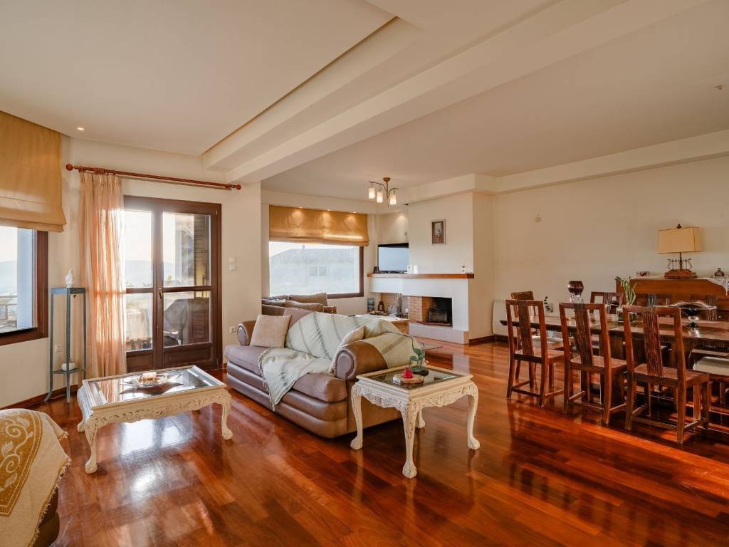 A modern detached house in Alli Meria of Pelion, just 5 minutes from Volos. The property is 372sq.m., located on an 800sq.m. plot, and was built in 2002. It extends over 3 levels: basement, ground floor, and first floor. On the ground floor, there is a large open-plan living room with a fireplace. This space offers unobstructed views of the Pagasitikos Gulf, both from inside the house and from the spacious veranda. On the same level, there is a comfortable kitchen, 1 bedroom, and 1 bathroom that also serves as a guest WC. On the 1st floor, the house offers 3 comfortable bedrooms. The master bedroom features an en-suite bathroom, a walk-in closet, and unlimited views of the Pagasitikos Gulf. There are also 2 additional bedrooms that share another bathroom. In the basement, there are 2 spacious parking spaces as well as a large unused area that can be configured according to the owner’s needs. The house is in excellent condition and features wooden floors in most areas, oil heating, and air-conditioning for cooling. An exceptional, modern detached house with stunning views of the Pagasitikos Gulf.