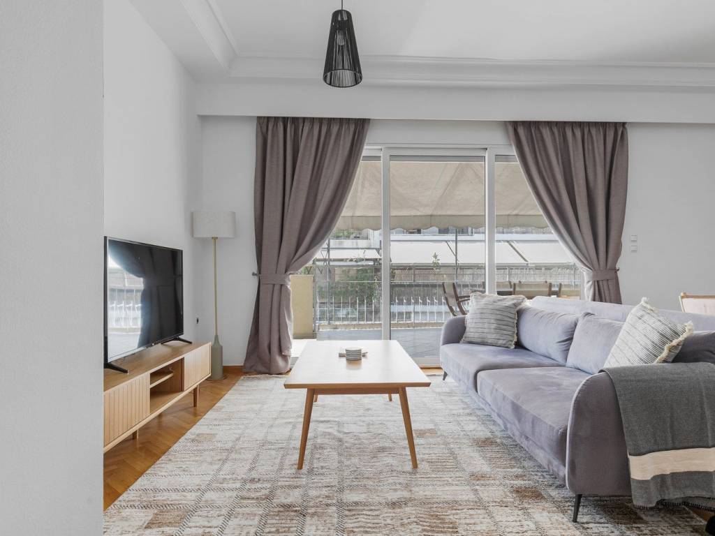 Thoughtfully designed with bespoke finishes, modern furnishings,and a fully equipped kitchen,you’ll enjoy that “I’m home” feeling with this Blueground apartment. Whether you’re lounging in your stylish living room streaming the latest and greatest entertainment on the smart TV or premium wireless speaker, or getting some well-earned rest on the superior quality mattress with luxury linens, you’ll fall in love with everything this Ampelokipoi apartment has to offer.