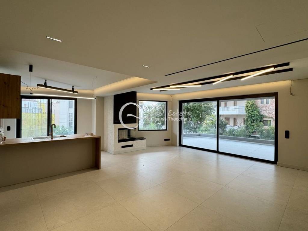 Apartment For rent, floor: 1st, in Marousi - Soros. The Apartment is 115 sq.m.. It consists of: 2 bedrooms (2 Master), 2 bathrooms, 1 wc, 1 kitchens, 1 living rooms and it also has 2 parkings (1 Pilotis space, 1 Underground). The property was built in 2025. Its heating is Autonomous with Heat pump, Underfloor heating, Air conditioning, Solar water system, Thermal insulation, Thermal facade are also available, it has Alluminum, Thermal brake frames with Double glazed windows, the energy certificate is: A+ and its floors are Tiles. The property's status is: New development, Excellent condition, it has Good view. The Apartment is With Facade, Bright, Airy, Sunny, Luxury, Modern and it also has the following unique features and advantages: Window Screens, Elevator, Energy fireplace, Storage, Security door, Security alarm, Quiet neighborhood, Porch, Electric shutters. Theocharis Real Estate, website: https://www.akinita-theocharis.gr/el/home
