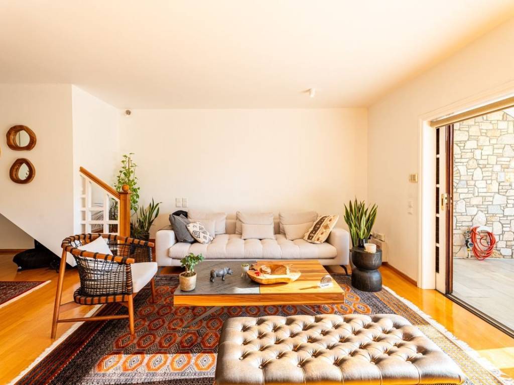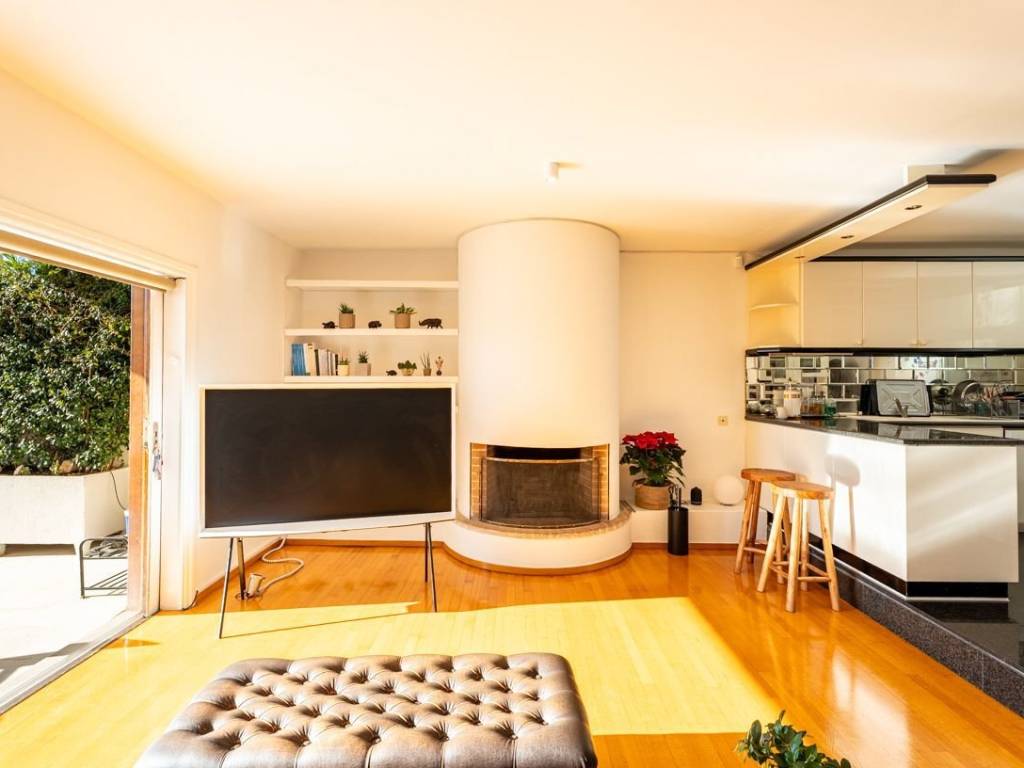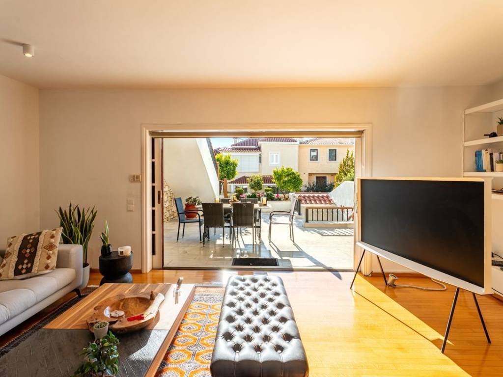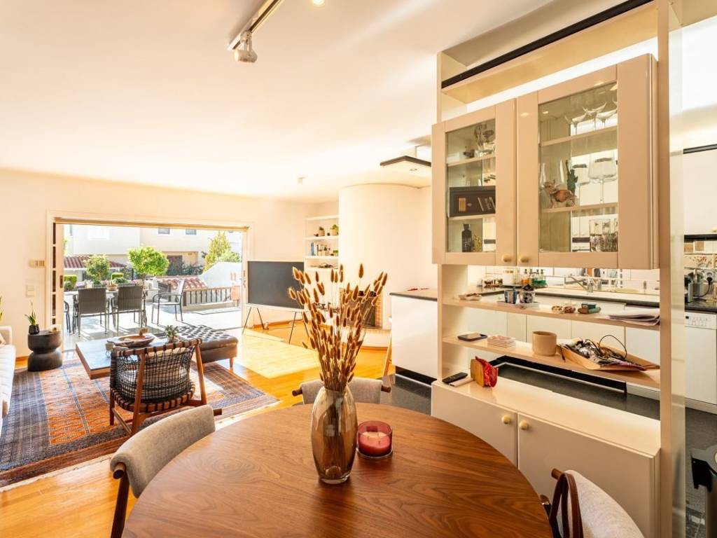 Engel & Völkers presents in exclusivity for rent a beautiful raised ground-floor apartment with a total surface area of 100 sq.m., renovated in 2000 and offered in excellent condition. The residence features a spacious living room with a fireplace, a dining area, and a fully functional open-plan kitchen. It includes two bedrooms, one bathroom, and ample built-in wardrobes located along the hallway between the bedrooms. The large terrace offers a lovely, unobstructed view of the mountain, creating an atmosphere of tranquility and relaxation. Additional features include one parking space, an alarm system, wooden window frames in excellent condition with double glazing, a courtyard with BBQ facilities, and well-maintained wooden floors throughout the apartment. Heating is autonomous and oil-powered. The apartment harmoniously combines comfort, quality, and refined aesthetics, making it an ideal choice for couples seeking an elegant home in a quiet and privileged location. For more information or to schedule a viewing, please contact Engel & Völkers. Politeia is an affluent suburb situated at the foot of the pine-clad Penteli mountain range, just 4 km from Kifisia and 16 km from the Athens city centre. Politeia is a strictly residential area, which means that retail, commercial shops and professional businesses are not permitted within the community. Politeia is a lush suburb, surrounded by forests, ideal for those seeking harmony with nature. Large, spacious villas abound and it is home to expats and to some of the country's most powerful business and shipping families. Most residents avail of the sports facilities at exclusive members-only clubs such as the Politia Tennis Club. International schools are easily accessible by school-run bus services. Politeia is well-connected to Kifissia, the closest commercial hub, and the rest of Athens. Its proximity to the National Highway makes it easy for quick weekend getaways.