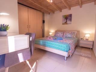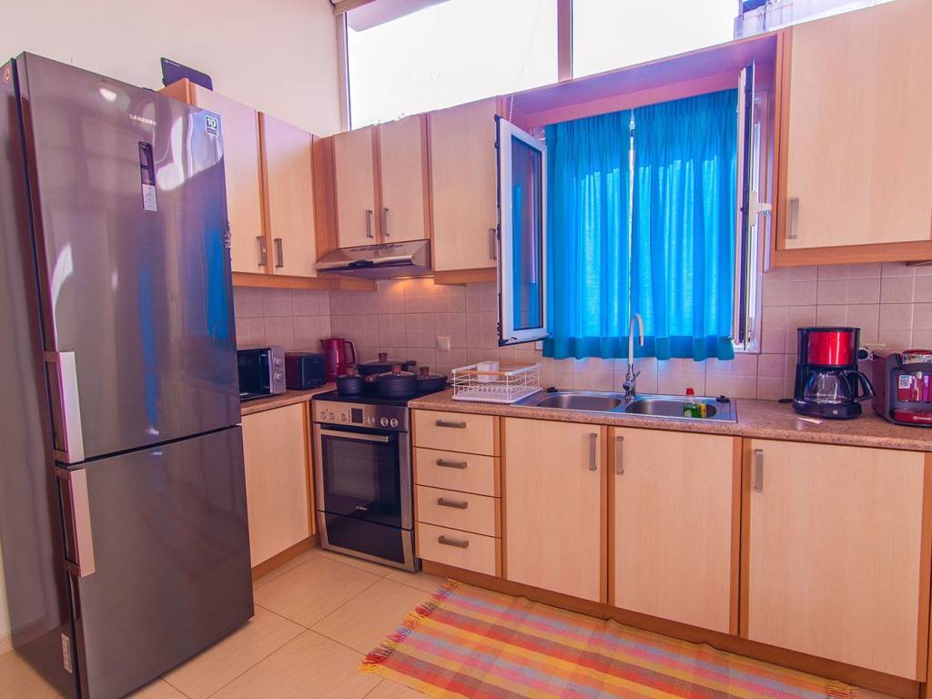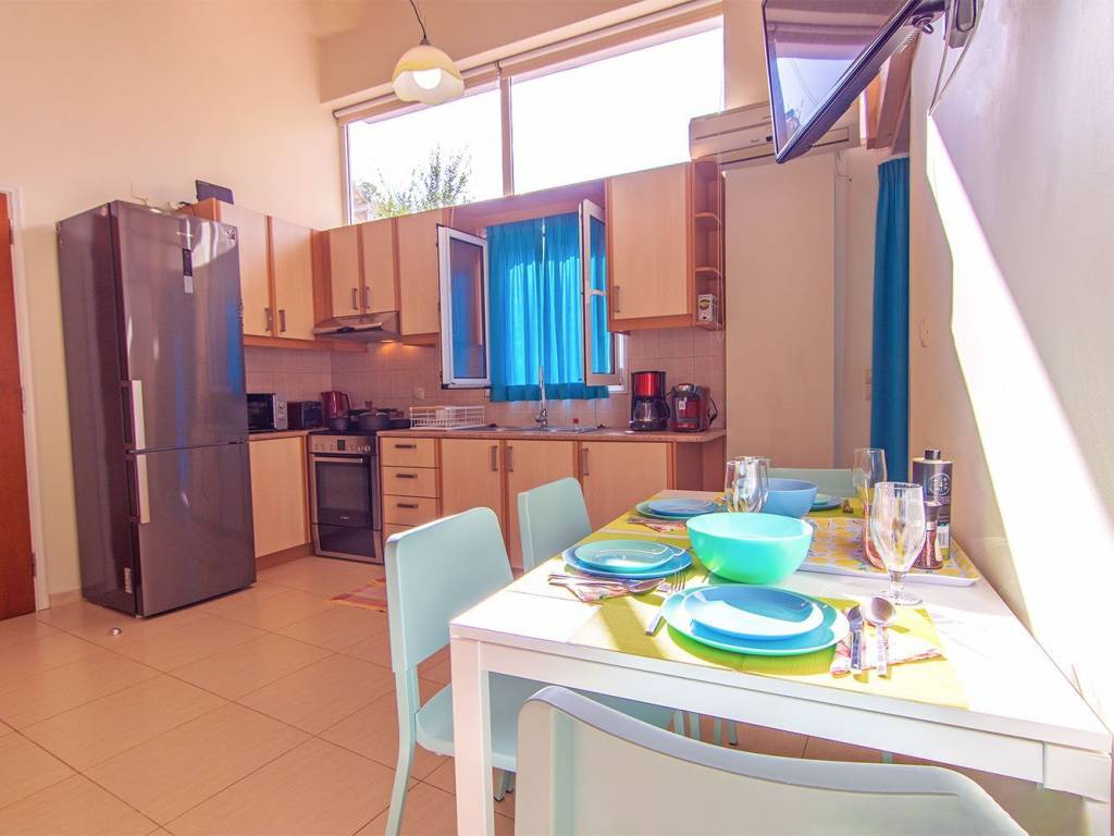 Our apartment "Oasis Garden", is located in Mastabas, Heraklion and is available for long-term rental. Minimum one-year rental contract 600 euros per month, up to 2 people (excluding utilities) 200 Mbps internet included One small pet allowed Ground floor apartment 45 sq m Fully equipped kitchen Living room - Dining room One bedroom - One bathroom Loft 15 sq m and height 1.40 m. (used as a second bedroom and/or work space) Direct access to a large shared garden With its own electricity meter Furnished and electrically equipped Facilities Large shared garden Cooling/heating air conditioning in the living room Fully equipped kitchen Samsung fridge-freezer Bosch electric stove with oven Tassimo coffee maker (Espresso, Cappuccino, Chocolate, Tea) Classic coffee maker Microwave oven Bosch kettle - Bosch toaster - Grill Kitchen scale & mixer Hair dryer Samsung 6 kg washing machine Dual energy water heater (solar and electric) A double mattress on the loft 2 desks and 2 office chairs, on the loft Colored wireless printer Open wardrobe in the loft Iron & ironing board Vacuum cleaner Safebox Furnished terrace Security lights - smoke detector - fire extinguisher All linen provided No subletting allowed The apartment is 6 km from the airport, 2.6 km from the port, 2.4 km from the center of Heraklion and 5.4 km from Amoudara beach. Within walking distance there are supermarkets, butchers, grocery stores, bakeries, cafes, restaurants, pastry shops, pharmacies, parks, bus stops, taxi ranks, etc. Contact any time via WhatsApp message