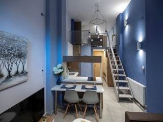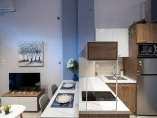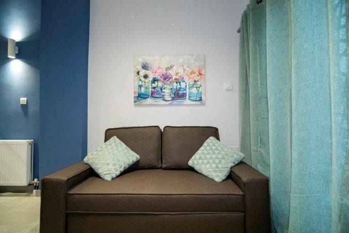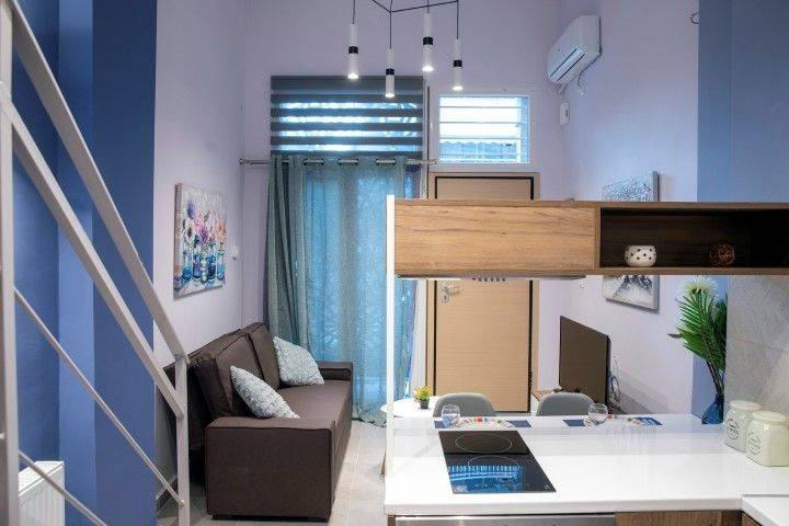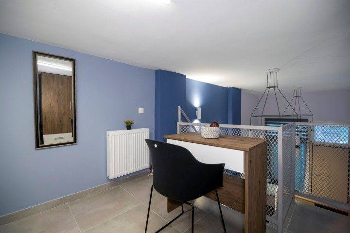 A very pretty and modern loft, 41 m2, on Poliorkitou str. very close to the Ministry of Macedonia-Thrace and the church of Saint Dimitrios. This loft is decorated in wonderful blue calming tones and makes the tenant immediately feel at home. It is very comfortable, has two bedrooms and a spacious bathroom as well as a fully equipped kitchen. Additional characteristics: easy free of charge public parking with the use of the blue card issued only for city center residents (applicable only for long term rentals), A+++ energy class AC inverter, autonomous natural gas heating, Wi-Fi access and Smart TV with Netflix infrastructure.