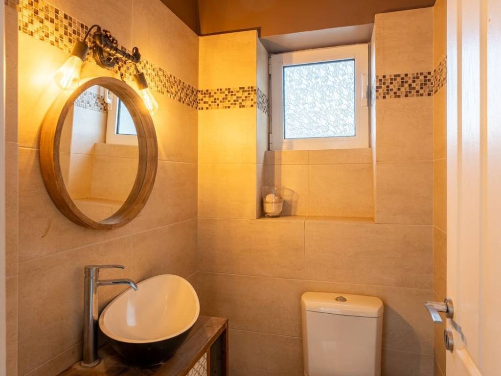 A beautiful and highly functional three-level maisonette with a garden and courtyard is for sale, located in a very quiet and lush green area of Nea Makri. The property sits on a 390 sq.m. plot and is fully integrated into the natural environment, offering privacy, comfort, and a high quality of life. It features two independent entrances and consists of a fully configured independent semi-basement apartment of 97 sq.m. and a 140 sq.m. maisonette arranged over a raised ground floor and first floor. The independent semi-basement apartment is bright and comfortable, with an open-plan kitchen and living area, where an office space can also be created. The fireplace adds warmth and a cozy atmosphere. It includes 2 bedrooms (one of which is a master bedroom) and has access from a separate entrance through the rear courtyard, making it ideal for hosting guests, professional use, independent living, or investment purposes. The 140 sq.m. maisonette is developed over two levels. On the raised ground floor, there is a large and bright open-plan living area, harmoniously separated from the kitchen by a breakfast bar. The kitchen is equipped with branded built-in electrical appliances, while the energy-efficient fireplace creates a sense of warmth and relaxation. On the same level, there is also 1 WC, and the large, double-aspect balcony doors provide abundant natural light and views of the greenery. Access to the upper floor is via an internal staircase made of Dionysos marble, where there are 2 bright bedrooms and 1 master bedroom, all equipped with air conditioning, as well as 1 additional bathroom. Both levels feature terraces on both sides, offering views of the lush natural surroundings of the wider area. Additionally, on the rooftop there is the possibility to construct a pergola of approximately 30 sq.m., with beautiful views of the Nea Makri beach. Finally, the property includes 1 parking space, central oil heating, high-quality aluminum window frames, a security door, and an alarm system, combining functionality, comfort, and security. It is an ideal residence, located in one of the quietest areas of Nea Makri. This is an ideal residence, located in one of the quietest areas of Nea Makri. Nea Makri is a picturesque coastal town in Eastern Attica, located approximately 25 km from the center of Athens. It is known for its quiet beaches, lush green surroundings, and peaceful atmosphere, offering an ideal combination of seaside living with easy access to the Athens. The area provides full amenities, including shops, cafes, restaurants, seaside tavernas, schools, and medical services, while direct road connections ensure quick access to Athens, Rafina, Eleftherios Venizelos airport and the surrounding areas. With its tranquil environment and natural beauty, Nea Makri is a popular choice for family living, vacation homes, and investment properties, offering a unique blend of relaxation and accessibility. This property is situated in a quiet and highly desirable area of Nea Makri, just a few minutes from the beach, providing a high quality of life, comfort, and peace in a natural setting, while remaining conveniently close to all everyday amenities and services.