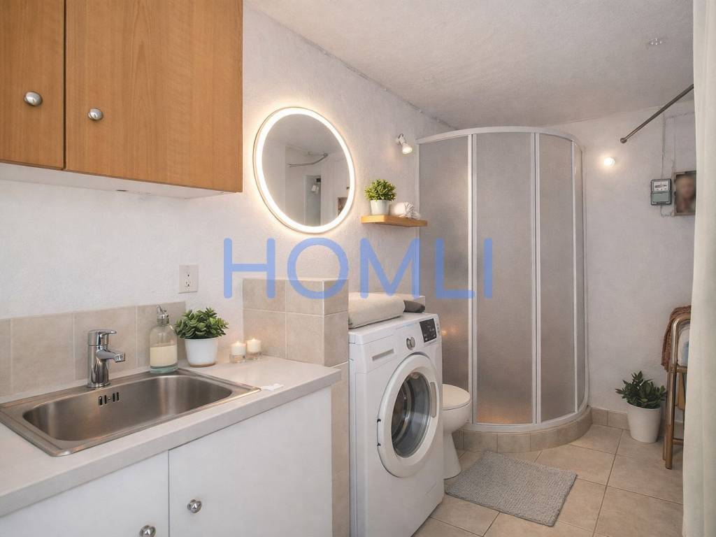 Bright apartment with exclusive use of a terrace. It features a built-in barbecue. Year of construction: 1998. It consists of a living room, one bedroom, a kitchen, and a bathroom.