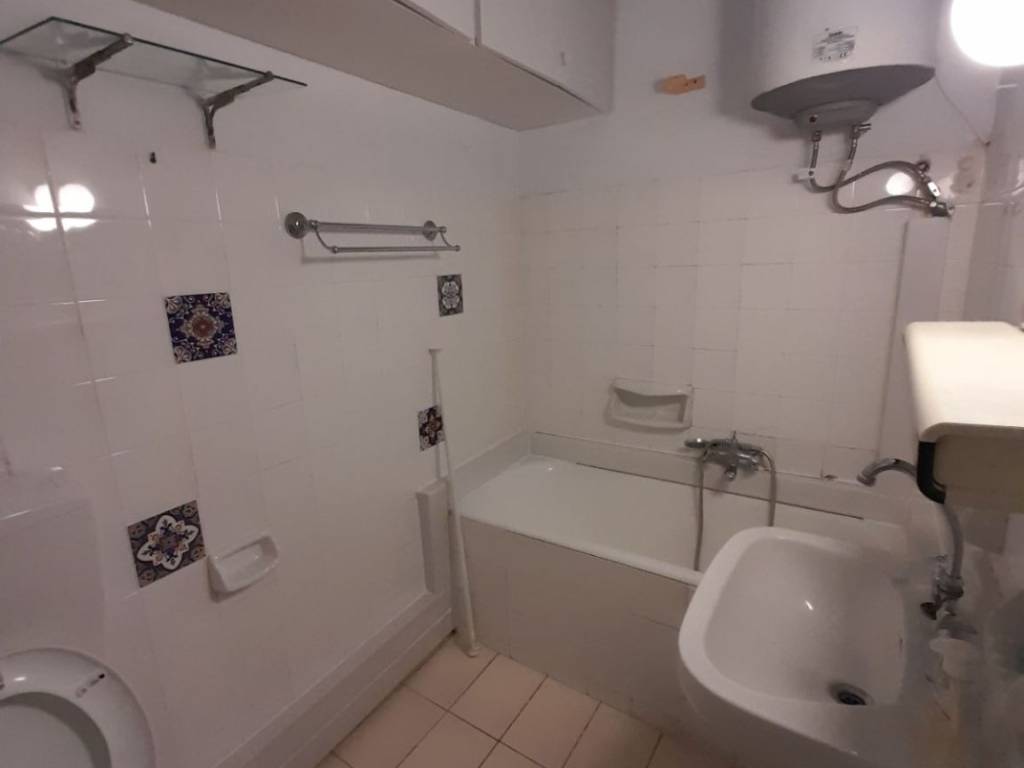 it is located in the city center 200 m away from the main city's square. very quiet. faces at the building's ground. warm because it has other apartments around it and cool in the summer because it is low in the 4-storey building. it has a balcony. large kitchen and bathroom. wooden floors. fully furnished. with 2 separate rooms kitchen and bath. air conditioned
