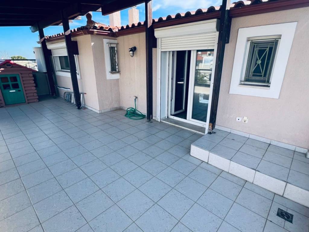 Apartment 120 sq.m., penthouse on the 2nd floor, on a plot of 700 sq.m., in very good condition. It features a living room, 2 bedrooms, one office, one bathroom, all electrical appliances, fireplace, autonomous oil heating, large verandas, double glazing, and tiled flooring. It is very bright, quiet, on one level, and has a swimming pool.