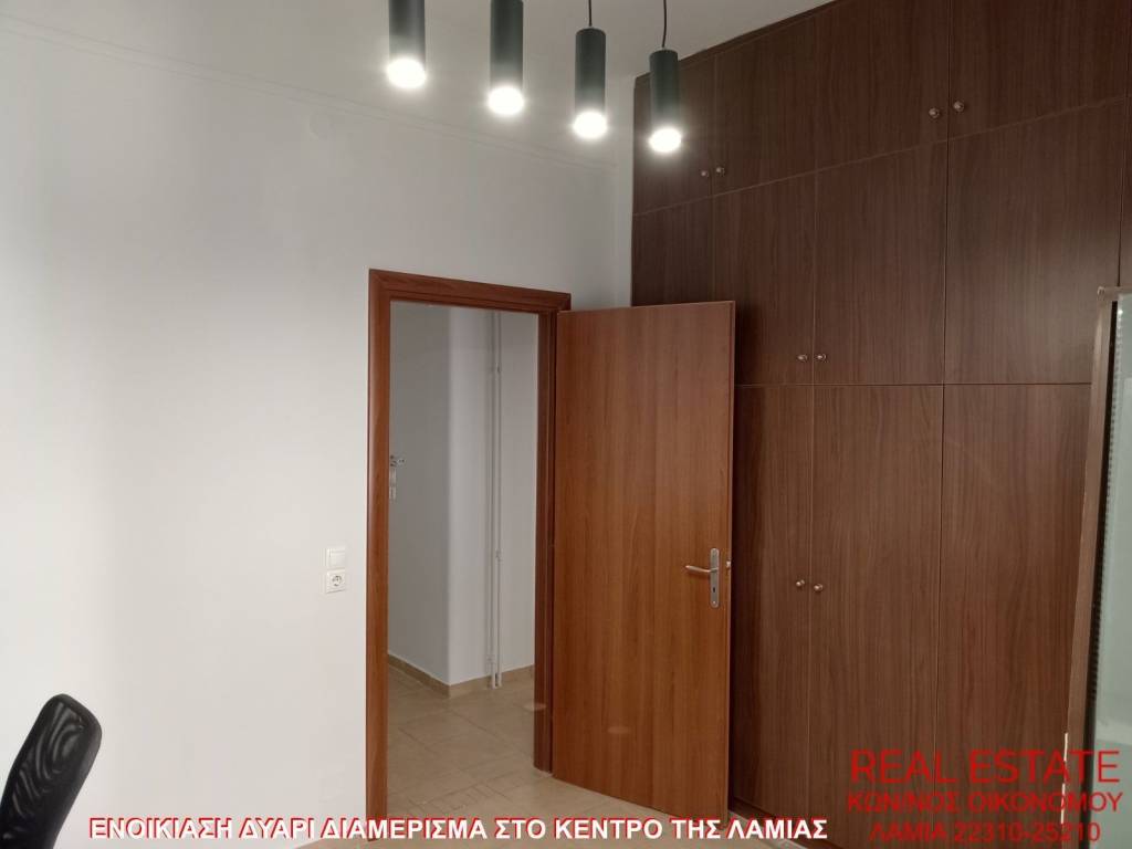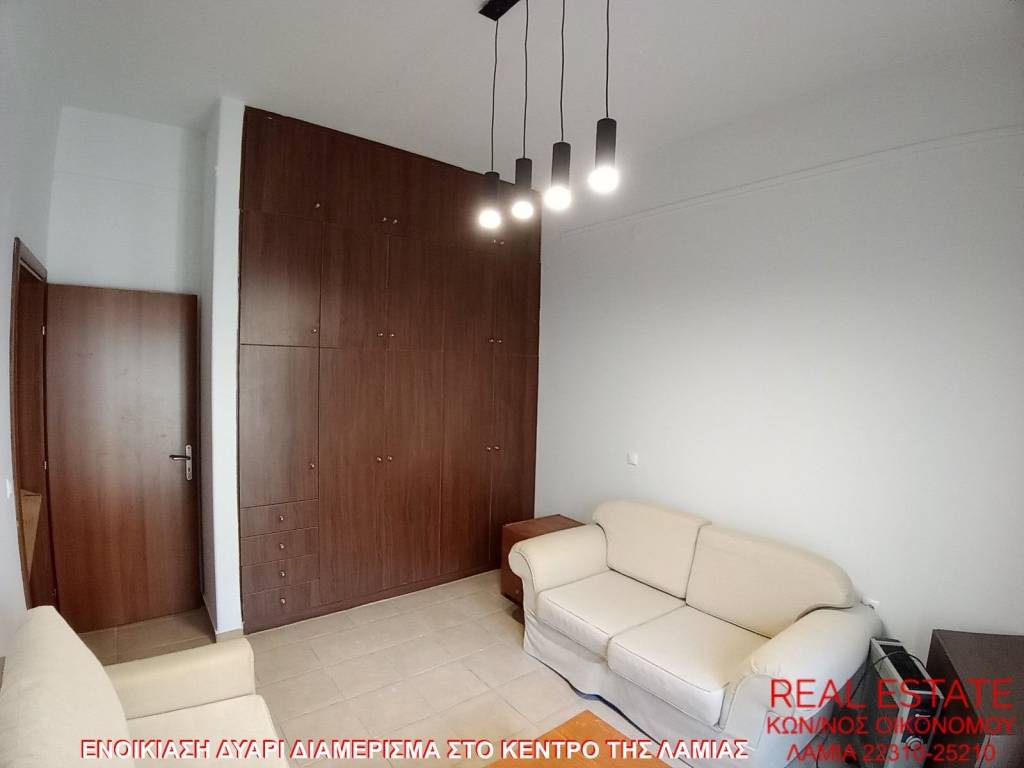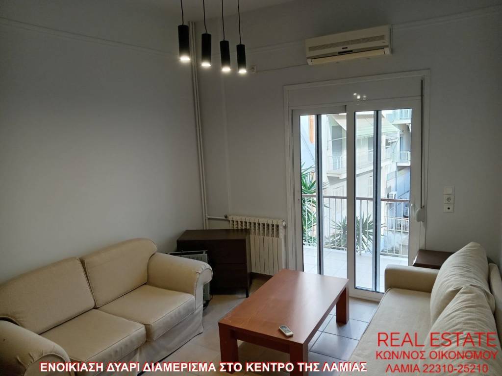 Apartment for rent, in the center of Lamia. It is 55 sq.m., 1st floor, fully renovated, in excellent condition and bright. It consists of a living room, kitchen, one bedroom and one bathroom. It has autonomous oil heating, new toyotomi air conditioner, security door, aluminum frames, double glazing, screens and a terrace. Rental price 450 euros.