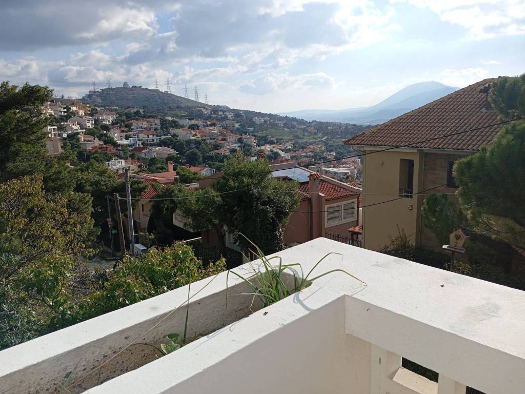 Apartment, in Nea Penteli, on the hill above the square, unlimited view, large balcony, large courtyard, solar water heater, a spacious bathroom, large living room with fireplace, a parking spaceThe rent includes heating costs (oil).