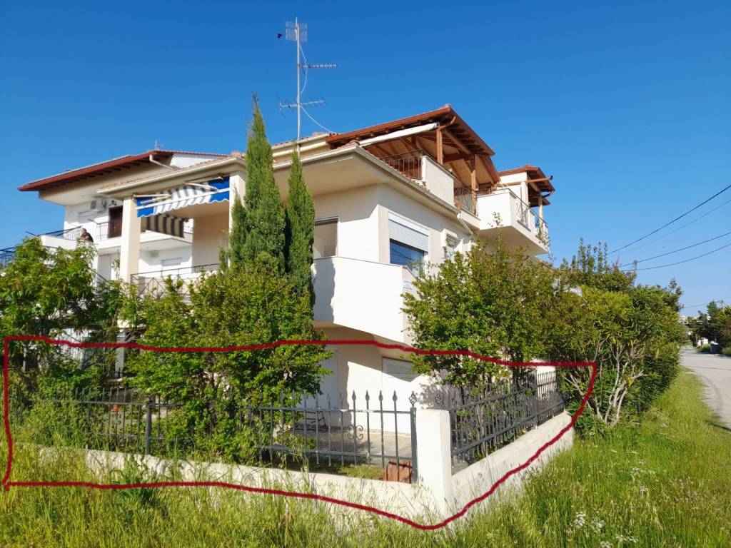 Very beautiful and quiet neighborhood with luxurious detached houses nearby. Sea view 30 meters from the beach It is a 75 sq m semi-basement with a large yard with sea view, value 85,000 euro.with the red outline in the picture.