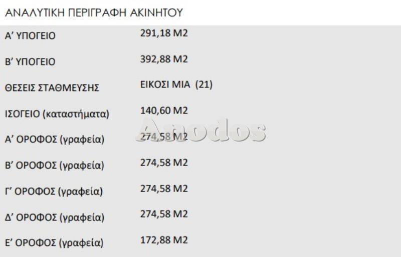 ΜΕΤΑΞΟΥΡΓΕΙΟ, ΚΤΙΡΙΟ ΓΡΑΦΕΙΩΝ, Ενοίκιο Κατασκευής 1998, 2096 τ.μ, Πάρκιν, Αποθήκη, Ασανσέρ, Θέρμανση, wc, (Επίπεδα 8), (Τμ Υπογείου 684), (Ισόγειο Τμ 140,6), (Α Οροφος 274,58), (Β Οροφος 274,58), (Γ Οροφος 274,58), (Δ Οροφος 274,58), (Ε Οροφος 172,88) 1. Πρόκειται για αυτοτελές πολυώροφο κτίριο που βρίσκεται στην Αθήνα σε μικρή απόσταση από τον σταθμό του μετρό της Πλ. Καραισκάκη. 2. Αποτελείται από ισόγειο, πρώτο, δεύτερο, τρίτο, τέταρτο και πέμπτο πάνω από το ισόγειο ορόφους. Έχει συνολική επιφάνεια ανωδομής 1411,8 τ.μ. ως και πρώτο και δεύτερο υπόγειο (χώροι στάθμευσης), συνολικής επιφάνειας 684,06 τ.μ. Συγκεκριμμένα, το κτίριο αποτελείται από ισόγειο 140,6 τ.μ., Α’, Β’, Γ’ και Δ’ ορόφους που ο καθένας έχει επιφάνεια 274,58 τ.μ. και Ε’ όροφο επιφάνειας 172,88 τ.μ. 3. Πρόκειται για κτίριο σύγχρονης κατασκευής που έχει αποπερατωθεί το 1998. 4. Διαθέτει κεντρική μονάδα κλιματισμού (ψύξη – θέρμανση), υποδομή δομημένης καλωδίωσης, εγκατάσταση κυκλώματος παρακολούθησης και συναγερμού, σύστημα πυρόσβεσης και πυρανίχνευσης.