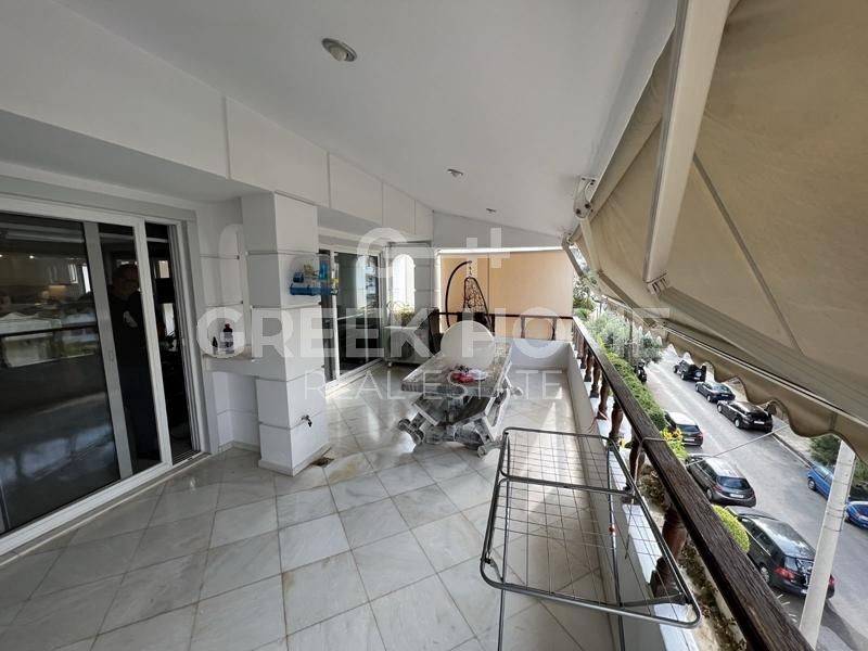 Glyfada, Ano Glyfada - Full floor Maisonette 140sqm bedrooms 3, master bedroom, levels 2, 3rd - 4th, renovated, year built 1992, energy class D, living room, hall, kitchen, 2 bathrooms, wc, heating type: autonomous (oil), parking ground floor, quiet, dual aspect apartment, luminous, sea view, frontage, storage space, solar heater, fireplace, balconies, large balconies, tents, elevator, garden, aluminum frames, door screen, ceramic tiles floors, secure door, video doorbell, luxurious, barbeque, internal elevator, pets allowed, price is negotiable, close to market (up to 100m).