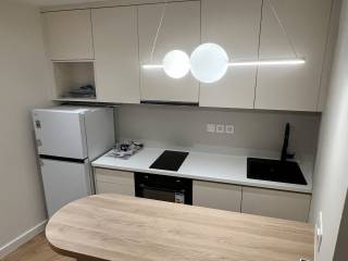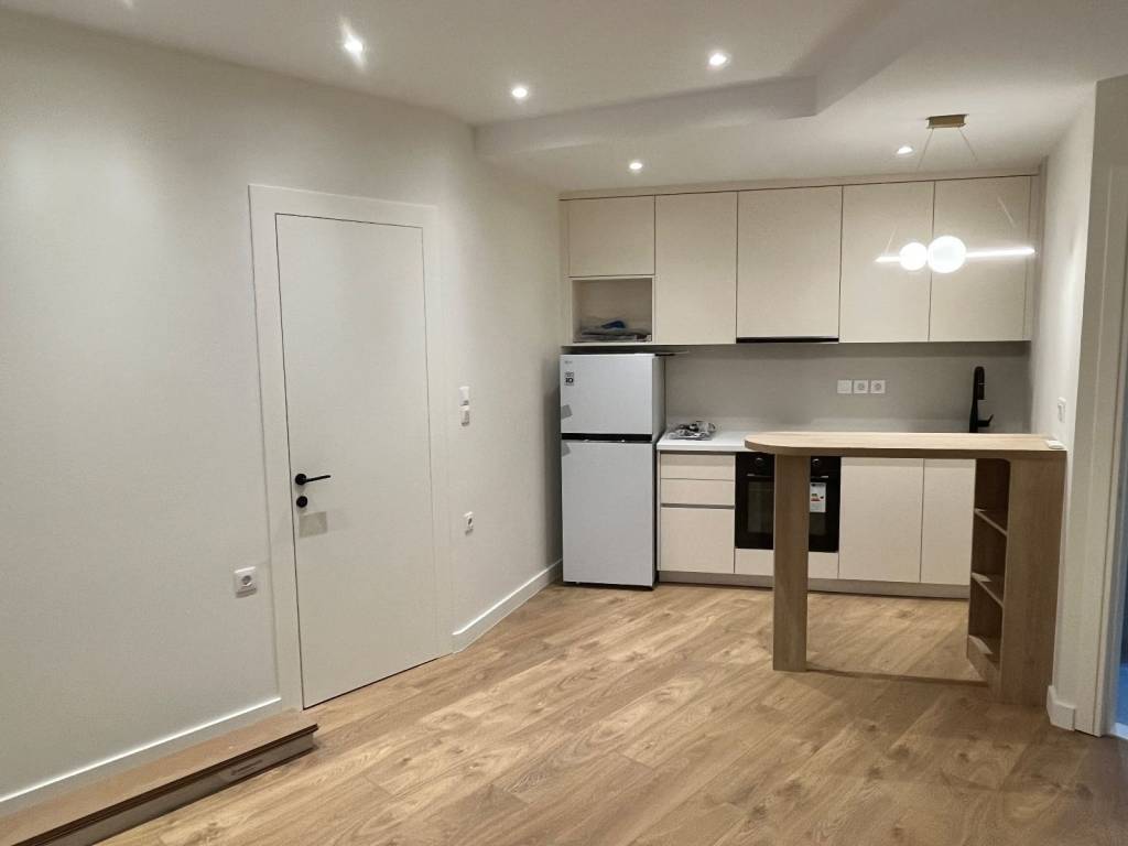 For Rent: Fully renovated and furnished apartment with brand-new electrical appliances, located in the heart of Ioannina, just behind the Prefecture building. The apartment consists of an open-plan living room and kitchen, a separate bedroom, and a bathroom, all designed with a modern aesthetic and high functionality. It features a TV in every room, as well as concealed lighting and spotlights, creating a pleasant and adaptable atmosphere. The spaces are particularly bright, while blackout curtains have also been installed. The bedroom includes a brand-new anatomical mattress and a spacious built-in wardrobe with sliding doors. The kitchen is fully equipped with built-in electrical appliances, a dishwasher, a range hood with activated carbon filters, and a breakfast bar, offering comfort and practicality. The bathroom, elegant and in harmony with the overall style of the apartment, features an LED mirror, a walk-in shower, an electric heated towel rail, and a washer–dryer. Both main areas are equipped with A+ energy-efficient air conditioning units for cooling and heating. The interior doors are flush-fitting, with concealed hinges and magnetic locks, enhancing the apartment’s modern urban character. There is an option to rent a private enclosed parking space at a low monthly cost, located in the building’s underground garage, accessible via the main elevator. This is a warm, stylish, quiet, and welcoming home, ideal for a student or working professional, in the most central area of the city. Available for immediate rental