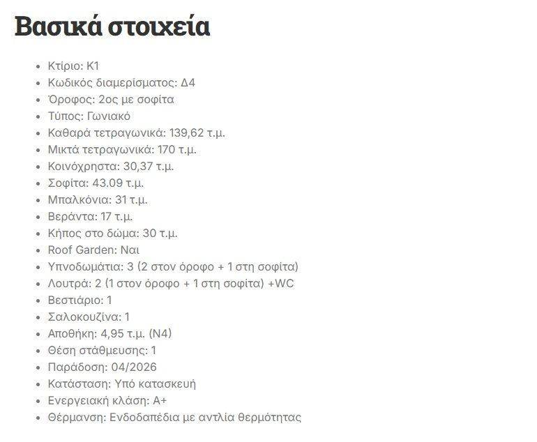 REAL ESTATE AGENCY G-MAS Real Estate ▶ OFFICIAL MEMBER OF THESSALONIKI REAL ESTATE ASSOCIATION 2026 Investment proposal ️ Code 972 # : ▶ UNDER CONSTRUCTION (FINAL STAGE - SHORT DELIVERY) corner maisonette, with THREE (3) VERY LARGE rooms / living room / kitchen, TWO (2) bathrooms & WC, LARGE balconies, OPENNESS & SEA VIEW AMAZING ROOF GARDEN. ✓170.00 SQM. GROSS & 139.62 SQM. CLEAN. ▶ QUIET STREET and LOW BUILDINGS OPPOSITE! On the 2nd floor (VERY HIGH / due to the slope of the ground) it has: → Living room, dining room, SEPARATE kitchen, TWO (2) LARGE rooms, ONE (1) bathroom & ONE (1) WC. On the 3rd floor (VERY HIGH / due to the slope of the ground) it has: → ONE (1) OVERSIZED room & ONE (1) bathroom / VERY LARGE, dressing room AND large space for STORAGE. ▶ AND ACCESS TO THE wonderful ROOF GARDEN, with sea view. ️️️ THE BUILDING IS IN A QUIET NEIGHBORHOOD! ✓ 1 PARKING SPACE, comfortable / fits a large car. ✓ Storage. ✓ ALL areas have very good NATURAL lighting and ventilation. ✓ SEWERAGE. ✓ SPECIAL CONSTRUCTION by an EXPERIENCED CONSTRUCTION COMPANY. ▶ Ideal property for owner-occupancy, CLOSE TO LARGE SUPER MARKETS, SCHOOLS, MARKET. FAST & EASY access to the city center, the Peripheral and large shopping centers, the Airport and Halkidiki⛱️ . → GENERAL FEATURES: Underfloor heating with heat-cooling pump. Energy class A +, excellent architecture with modern heating systems. ▶▶ Storage room 5 sq.m.. ✓✓ Parking space in the basement. ▶️ Technical characteristics of the apartment: • The entire frame (concrete and iron) with ISO 9001 specifications. • Energy class A++. • Maximum level of thermal insulation, sound insulation and energy consumption savings. • Underfloor heating with heat-cooling pump, which provides better heat distribution and energy savings. • Certified 10 cm thermal facade system by THRAKON or equivalent. • Partition wall soundproofing by KNAUF or equivalent. • Floor soundproofing PHONOBLOCK by MACON or equivalent. • Energy-efficient frames with thermal breaks, double or triple glazing, screens, electric blinds. • All spaces and ceiling plastered. • Floor covering with A’ grade granite tiles or semi-solid wood, according to the customer’s personal choice from partner stores. • Kitchen furniture from branded partner stores. • Wall-hung basins with taps - hand bidets. • Built-in cisterns in all bathrooms GROHE or GEBERIT or equivalent. • Sanitary ware will be from recognized and certified European factories such as GEBERIT or GROHE or equivalent. • The entrance door to the residence will be security with 15-point armor, panoramic eye, hidden latch, with CISA navel lock and catapult system, from a certified factory of the Golden Door type. • The external main entrance of the apartment building will be armored (security) with a plan approved by the supervising engineer with an electric security lock and automatic reset. It will be operated by the video door entry from the apartment and with a code or identification card upon entry. • Wood cladding on the balcony ceilings with provision for recessed lighting and hidden LED lighting. • Pre-installation for electric awnings. • Anodized aluminum railings and triplex glazing. • Import of balcony and common area tiles from Italy or Spain. • Wardrobes in each bedroom. • VIVECHROM colors or equivalent. • Pre-installation of air conditioning. • All apartments will have a radar alarm system installed in each room. • Installation and placement of a solar water heater collector. • Fiber optics. • Individual parking space on the building's roof. • Electric car charging point - pre-installation. • Lighting management of common areas with motion and brightness sensors for maximum energy savings. + Additional information about the location of the apartment: • 500 meters from a supermarket. • 2 minutes' drive from the exit to the Thessaloniki-Chalkidiki National Road. • Bus stops 100 meters away (lines 66 to Charilaou). • Very close to the Mediterranean Cosmos shopping center (about 2 km) and the IKEA area (about 3 km), just 5 minutes' drive. • Just 4 kilometers from Macedonia Airport (about 6 minutes' drive). • Very close to many public and private primary schools (Hellenic College and Mantoulidis). For a VIEW of the property and for more investment proposals, call 6932321463 (Tzimas Stergios) * It is necessary to present a Police ID or a document with the Tax Identification Number, according to Law 4072/11-4-2012 Government Gazette 86A. REAL ESTATE AGENCY G-MAS Real Estate +306932321463 Salaminos 10, Thessaloniki www.g-mas.gr