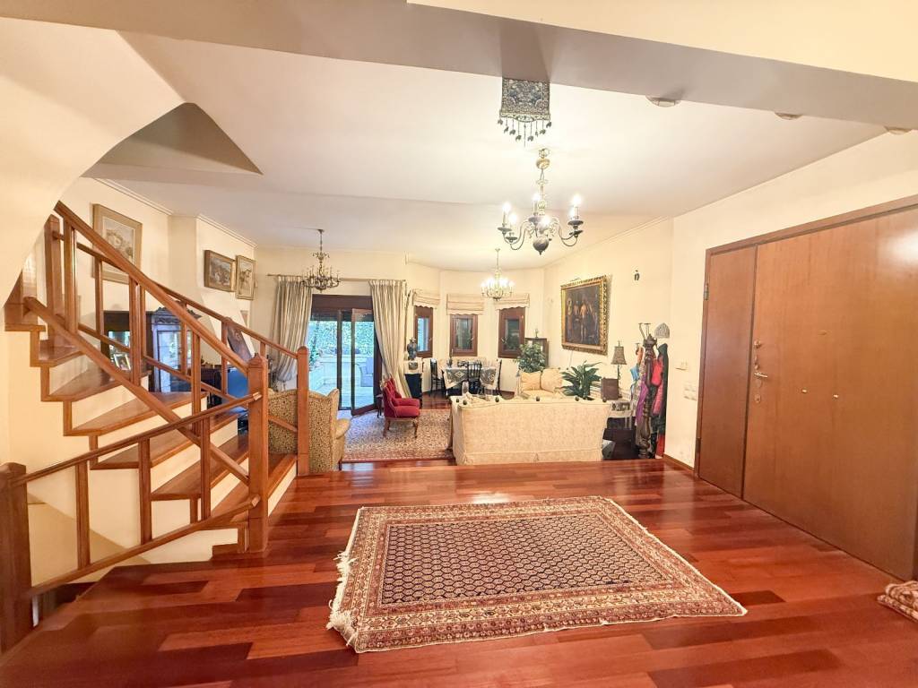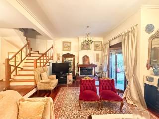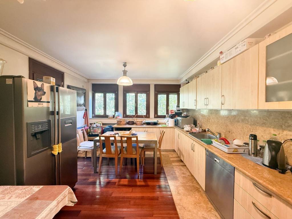 This is a detached house with a total area of ​​350m2 built in 2005 on a plot of 400m2. It is divided into 4 levels which are configured as follows: on the ground floor there is a large living room with a fireplace, a dining area, a large separate kitchen and a wc. We go up to the 1st floor by internal staircase or by elevator where there are 2 bedrooms, one of which is a master with its own bathroom, another bathroom and a space that can function as a 3rd room on this floor. In the attic there is a room - playroom with its own bathroom and access to the attic is via internal staircase and elevator. In the semi-basement which can also function as a separate apartment there is a living room with a fireplace, a bedroom and a bathroom. It has aluminum frames with double glazing and screens, oak floors in almost all areas, elevator on all levels, autonomous oil heating, 100sqm garden and verandas around the perimeter, underground parking, air conditioning, security door, alarm and storage spaces. It is located in a nice location with lots of greenery.