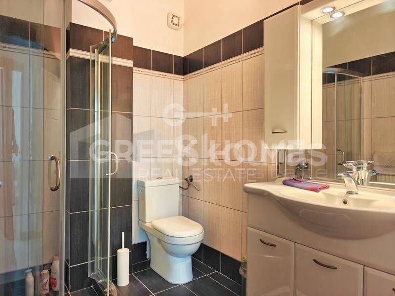 Sikyona, Kiato - Independent Maisonette 210sqm plot 550sqm, fully furnished, bedrooms 3, levels 2, ground floor (110sqm) - 1st (100sqm), newly built, year built 2021, energy class C, 2 living rooms, hall, 2 kitchens, 2 bathrooms, heating type: autonomous (oil), air condition, parking open space,2, quiet, dual aspect apartment, luminous, panoramic view, frontage, storage space, solar heater, fireplace, balconies, garden, built in appliances, aluminum frames, double glazed windows, door screen, ceramic tiles floors, office, three phase electricity, secure door, luxurious, internal staircase, pets allowed, north-eastern orientation, close to square (up to 200m), close to school (up to 100m).