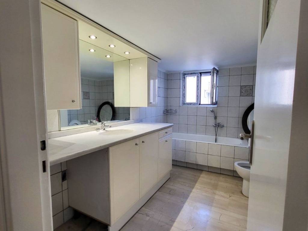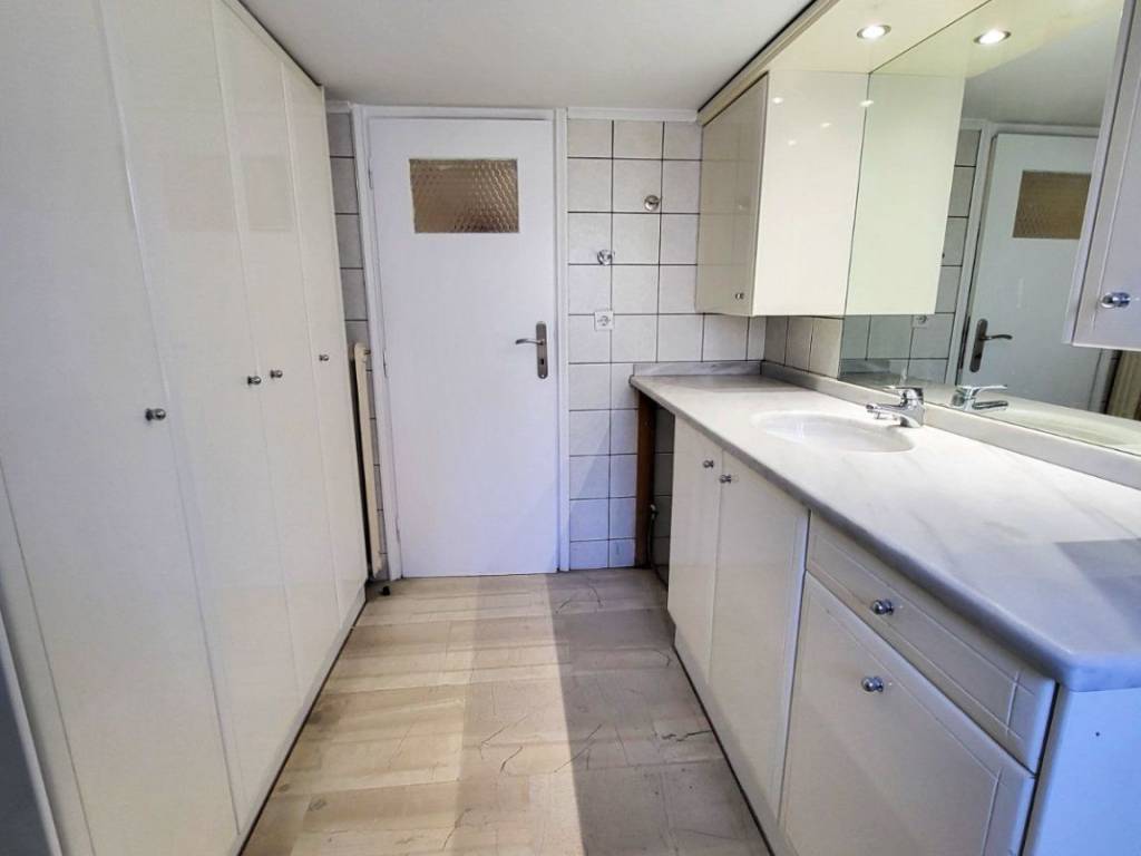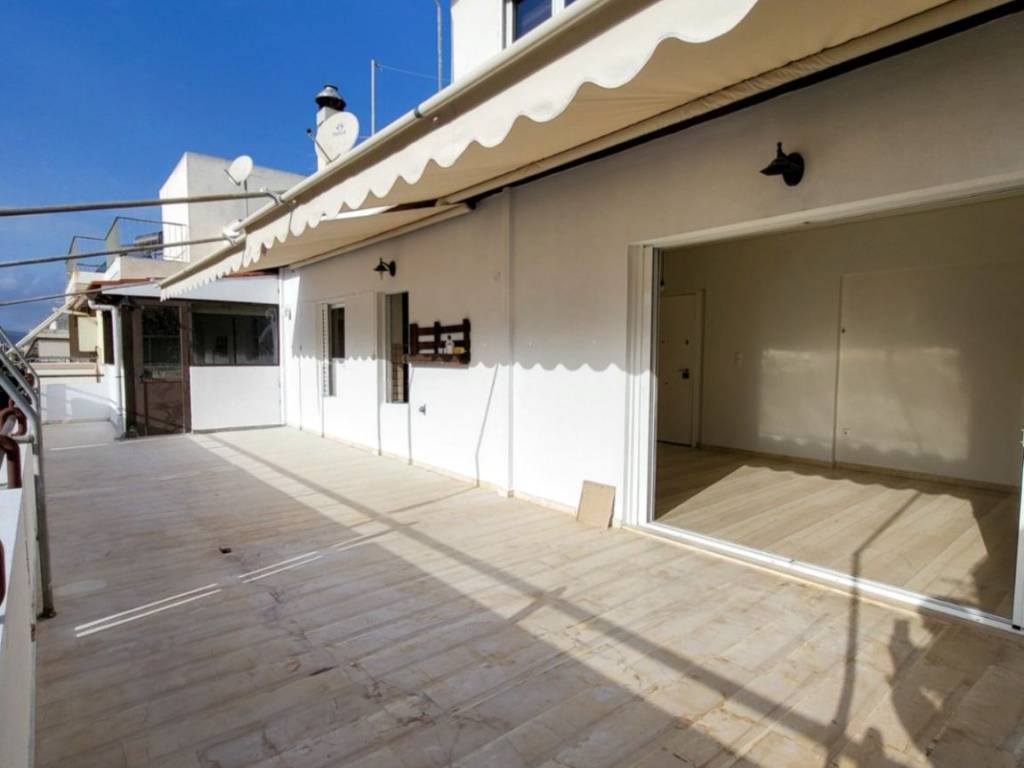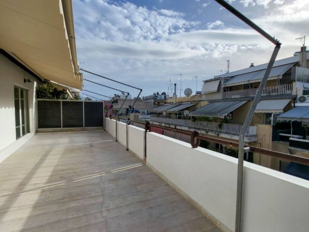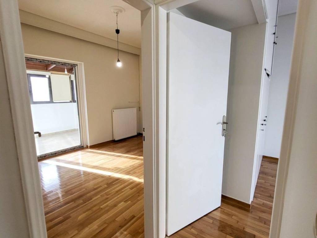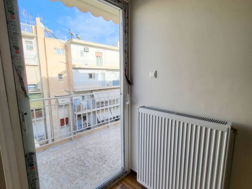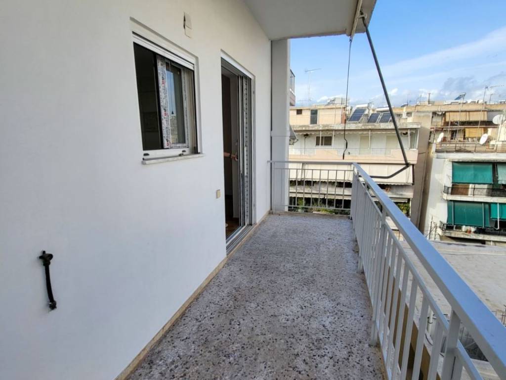 Exceptional penthouse apartment of 96 sq.m., located on the 5th floor, fully renovated in 2025, in a central area of Kallithea. It stands out for its impressive front balcony with open views, ideal for relaxation, entertaining, and everyday enjoyment, as well as for its dual-aspect layout, which ensures abundant natural light throughout the day. The apartment features a very spacious living and dining area with a fireplace, marble flooring, and direct access to the balcony, creating a unified and particularly comfortable living space. The independent and bright kitchen offers ample storage, a granite double sink, and space for a dining table. The bathroom is notable for its generous size and excellent design, with an emphasis on functionality and storage. It includes multiple built-in storage units, separate closets, a laundry hamper, space for a washing machine, and a large marble countertop with a built-in oversized mirror. The apartment comprises two large bedrooms with parquet flooring and built-in wardrobes, as well as a third bright room that can be used as an additional bedroom, office, or playroom. This room has access both from the master bedroom and directly from the balcony. It is equipped with brand-new aluminum window frames with double glazing, shutters, and insect screens, a new natural gas heating installation with new radiators (the natural gas installation is currently in progress), new awnings on both balconies, a security door, and a modern video intercom system. The property includes a parking space in the building’s pilotis, the building is served by an elevator, and pets are welcome. Ideal choice for a family. Two security deposits will be required.