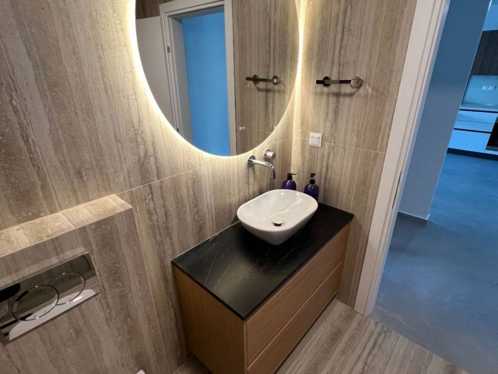 For Rent – Luxury Newly Built Ground Floor Apartment (A+ Energy Class) A bright, newly built ground floor apartment, Energy Class A+, constructed to modern standards with high-quality materials. Property Features: Fully equipped Italian kitchen with built-in electrical appliances (excluding refrigerator) Impressive 6-meter floor-to-ceiling glass frontage with unobstructed views 1 master bedroom with walk-in dressing room 1 bathroom with Italian sanitary ware and natural ventilation (window) Storage room with provision for a washing machine Additional Amenities: Underfloor heating Latest-generation heat pump for heating and domestic hot water Air-conditioning units in all areas High-level sound insulation Luxury elevator Pre-installed curtain rails in all rooms Ajax alarm system & fire detection in all areas Pre-installed fiber optic internet up to 1000 Mbps Private parking space Optional full furnishing available upon agreement. Available immediately. Note: Property viewings require presentation of ID or Tax Identification Number, in accordance with Greek Law 4072/2012.