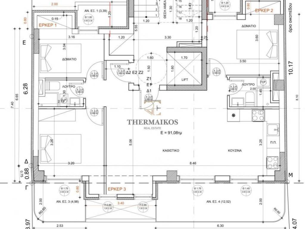 "Καλαμαριά - Κέντρο" Πωλείται νεόδμητο, οροφοδιαμέρισμα, πρόσοψης 127τ.μ. (91,08τ.μ. καθαρό). Πρόκειται για ένα πολυτελές, διαμπερές και φωτεινό ακίνητο. -Βρίσκεται στον 4ο όροφο της οικοδομής και διαθέτει ασανσέρ. -Το ακίνητο αποτελεί μια αξιόλογη επιλογή για οικογένειες και εργαζόμενους. -Πρόκειται για καινούργιο Project υπό κατασκευή ακίνητο. Αποτελείται από 3 υπνοδωμάτια με ντουλάπες, σαλοκουζίνα 1 μπάνιο και 1 wc. -Επιπλέον διαθέτει βεράντα -αποθήκη υπογείου και -Θέση στάθμευσης. Στα εσωτερικά του στοιχεία αξίζει να σημειωθούν η πόρτα ασφαλείας, η προεγκατάσταση του συναγερμού, η προεγκατάσταση του κλιματισμού. Διαθέτει κουφώματα αλουμινίου με διπλά τζάμια. Τα δάπεδα είναι από πλακάκια. Διαθέτει αυτόνομη ενδοδαπέδια θέρμανση με αντλία θερμότητας (ατομική). -Η ενεργειακή του κλάση είναι A+. -Ο προσανατολισμός είναι νοτιοδυτικός. Βρίσκεται κοντά σε στάση λεωφορείου, -σε απόσταση 500μ. από στάση μετρό. ‍♀️-Σε απόσταση 1000μ. από την παραλία -ΓΕΝΙΚΕΣ ΠΛΗΡΟΦΟΡΙΕΣ Η Καλαμαριά είναι πυκνοδομημένη συνοικία της Θεσσαλονίκης στο νοτιοδυτικό τμήμα του Πολεοδομικού Συγκροτήματος Θεσσαλονίκης. Στην Καλαμαριά λειτουργούν 7 Γενικά Λύκεια, 2 Επαγγελματικά Λύκεια (Ημερήσιο και Εσπερινό), 10 Γυμνάσια, 18 δημοτικά σχολεία και 24 νηπιαγωγεία. Η Καλαμαριά συνδέεται με το κέντρο της Θεσσαλονίκης, από βόρεια μέσω των οδών Γεωργίου Παπανδρέου (Ανθέων) και Γρηγορίου Κυδωνιών ή μέσω Μαρίας Κάλλας και Θεμιστοκλή Σοφούλη και από νότια προς βόρεια μέσω των οδών Πόντου, Αιγαίου και της Λεωφόρου Βασιλίσσης Όλγας, ενώ η σύνδεση με την ανατολική πλευρά της πόλης επιτυγχάνεται μέσω της Λεωφόρου Εθνικής Αντίστασης. Η πρόσβαση στον κόμβο Κ12 της Περιφερειακής Οδού είναι εύκολη. Η περιοχή εξυπηρετείται από τις λεωφορειακές γραμμές 01Χ, 02Κ, 03Κ, 04, 05, 06, 07, 33, 39 του ΟΑΣΘ, καθώς και από τη μοναδική νυχτερινή γραμμή της πόλης 01Ν. Με βάση τα χαρακτηριστικά του μπορεί να χαρακτηριστεί ως μια πολύ καλή επενδυτική επιλογή. ✅Τιμή πώλησης: 390.000€. ✅Κωδικός ακινήτου: 11042 Για περισσότερα ακίνητα επισκεφθείτε την ιστοσελίδα μας http://www.thermaikosrealest.gr. Thermaikos Real Estate Κλεάνθους 39, Θεσσαλονίκη, Ελλάδα http://www.thermaikosrealest.gr info@thermaikosrealest.gr Τηλέφωνο: 2310900700 Κινητό: 6907219389, 6956139149 ΥΠΕΥΘΥΝΟΣ ΑΚΙΝΗΤΟΥ: ΣΑΛΒΑΡΗΣ ΓΙΩΡΓΟΣ Προσοχή! Για την υπόδειξη του ακινήτου είναι απαραίτητη η υπόδειξη της αστυνομικής ταυτότητας και του Α.Φ.Μ. σας σύμφωνα με τον Ν.4072/11-4-2012 ΦΕΚ 86 Α.