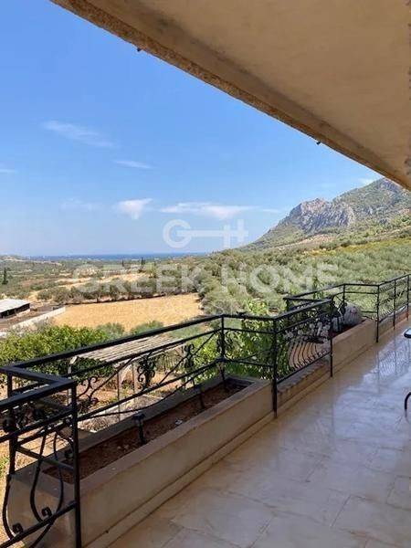 Korinthos, Xylokeriza - Detached House 220sqm plot 760sqm, fully furnished, bedrooms 3, ground floor, excellent condition, year built 1984, energy class C, living room, kitchen, 2 bathrooms, wc, heating type: autonomous (electricity), air condition, parking open space, quiet, dual aspect apartment, luminous, unobstructed view view, frontage, storage space, solar heater, fireplace, balconies, garden, aluminum frames, double glazed windows, door screen, ceramic tiles floors, secure door, pets allowed, east-southern orientation.
