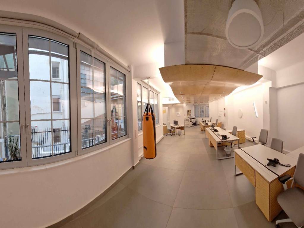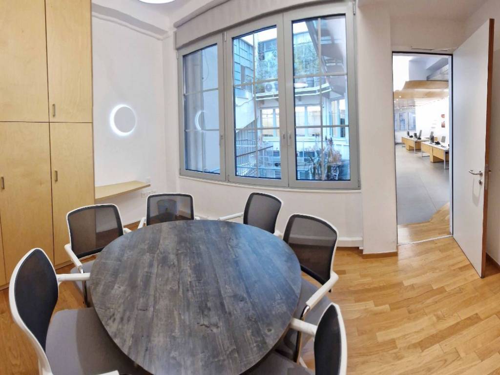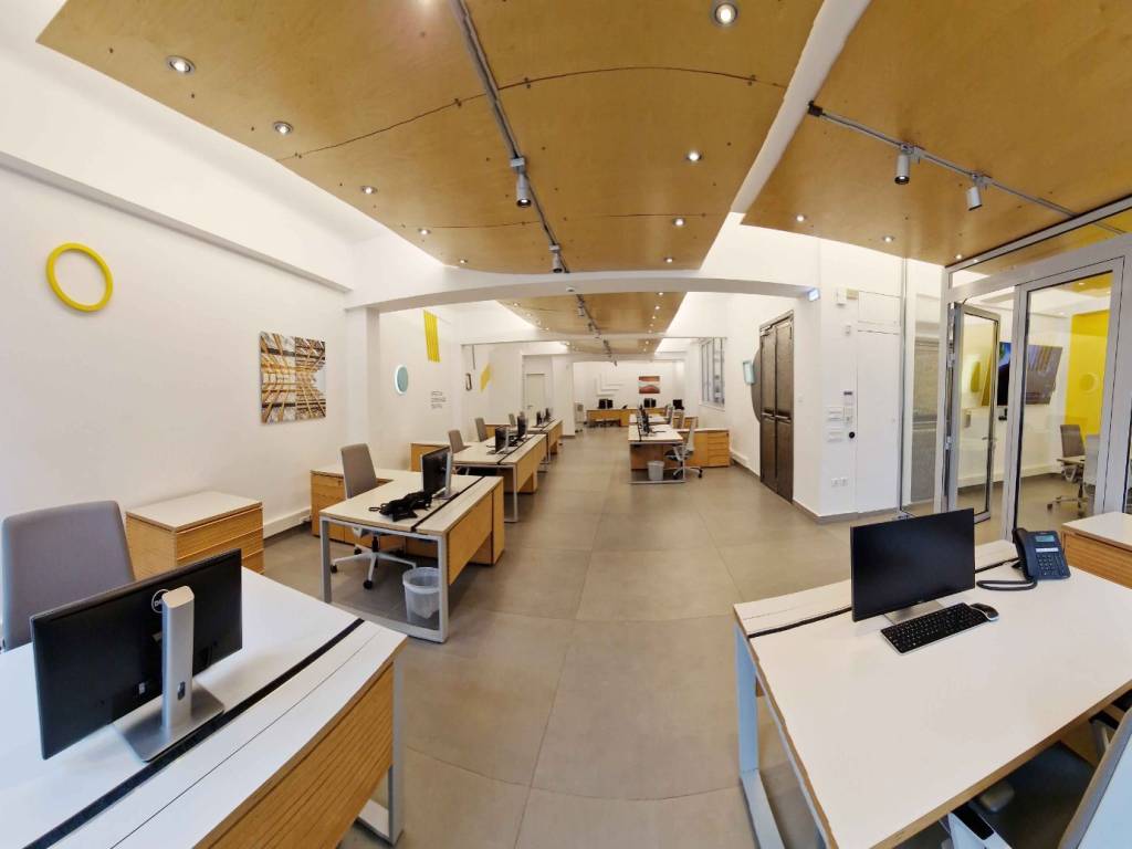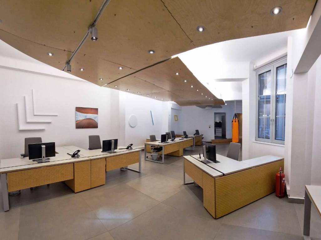 Στα γραφεία προς ενοικίαση περιλαμβάνεται ο παρακάτω εξοπλισμός: • Θέρμανση και ψύξη μέσω κλιματιστικών μονάδων Daikin: o Εσωτερικές κλιματιστικές μονάδες τύπου οριζόντιας τοποθέτησης κρυμμένες στην ξύλινη design οροφή. o Πλήρη εξάλειψη τόσο του λειτουργικού τους θορύβου μέσω ηχομόνωσης πετροβάμβακα, όσο και της ροής του αέρα τους μέσω κατάλληλων ηχοπαγίδων. o Ελεγχόμενες μέσω επίτοιχων control και μέσω Bluetooth από Web App (iOS & Android) της Daikin. • Δομημένη καλωδίωση για 25+ θέσεις εργασίας με παροχές ανά θέση: o Δικτύου ethernet (Data & VoIP) 2 Χ RJ45 πρίζες, ταχύτητας 1 Gbps (Cat 6e). o Πρίζες (λευκές) ρεύματος AC μέσω δικτύου. o Πρίζες (κόκκινες) ρεύματος AC μέσω μπαταριών UPS. • Rack/Server Room χωρητικότητας ενός Rack 42U. • Meeting room με υψηλή ηχομόνωση. • Τραπεζαρία/meeting room (Communal) με εντοιχισμένες ντουλάπες αποθήκευσης και ξύλινο δάπεδο (παρκέ). • Ευρύχωρη καινούρια κουζίνα εξοπλισμένη με πάγκους, συρτάρια, ντουλάπια και εντοιχισμένες ηλεκτρικές συσκευές: o 4 Κεραμικές εστίες. o Φούρνος. o Απορροφητήρας. o Πλυντήριο πιάτων. o Ψυγείο-καταψύκτης inox. o Παγομηχανή επαγγελματική για παγάκια συνδεδεμένη με το δίκτυο νερού για αδιάλειπτη λειτουργία και παραγωγή. • Δύο πολύ ευρύχωρες τουαλέτες, με κρεμαστές επίτοιχες λεκάνες και εντοιχισμένα καζανάκια (η μία με καμπίνα/ντουζιέρα, η άλλη με ντουλάπα αποθήκευσης). • Ηλεκτρικοί ανοξείδωτοι στεγνωτήρες χεριών στις 2 τουαλέτες πολύ μεγάλης παροχής ζεστού αέρα. • Μεταλλικές πόρτες ασφαλείας (μεταλλικές ιδιοκατασκευές design). • Κουφώματα ΕΤΕΜ top προδιαγραφών με τους μεγαλύτερους συντελεστές ηχομόνωσης και θερμομόνωσης. • Ηλεκτρικά roller blinds σε όλα τα παράθυρα (χρώμα ανοικτό γκρι). • Δάπεδο εξαιρετικά υψηλής ποιότητας, αντοχής και αισθητικής, αποτελούμενο από γκρι πλάκες/πλακάκια πολύ μεγάλων διαστάσεων: 1,20m X 1,20m. • Ηλεκτρικές σίτες εντόμων και εξωτερικά ρολά ασφαλείας αλουμινίου σε μερικά από τα παράθυρα. • Ξύλινη design οροφή μέσα στην οποία βρίσκεται κρυμμένος και ηχομονωμένος ο ηλεκτρομηχανολογικός εξοπλισμός του κλιματισμού του φωτισμού και των ηχείων. • Εγκατάσταση φωτισμού οροφής dimmable LED (κρυφού & Spot) πολύ χαμηλής κατανάλωσης ρεύματος. • Μεταλλικό εξωτερικό μπαλκόνι έξω από τα παράθυρα που βρίσκονται περιμετρικά στον φωταγωγό. • Το μπαλκόνι είναι διακοσμημένο με γλάστρες με φυτά (πικροδάφνες), τα οποία είναι φωτιζόμενα το βράδυ (αυτόματα μέσω χρονοδιακόπτη) και αυτόματο πότισμα ελεγχόμενο από Web App (iOS & Android). • Κατασκευασμένες υποδομές οπτικών ινών για άμεση σύνδεση με πάροχο τηλεφωνίας & Internet (Vodafone) με οπτική ίνα ταχύτητας 300Mbps upload & download (μισθωμένο κύκλωμα). • Μεταλλικό τροχήλατο Server Rack Enclosure 42U. • Τηλεφωνικό κέντρο iPECS – Ericsson – LG 30 γραμμών. • Τηλεφωνικές συσκευές IP – iPECS Lip3020 PoE (15 συσκευές) • Ενεργός εξοπλισμός ενσύρματου δικτύου (HP POE switches 1Gbps). • Ηχητική εγκατάσταση (HI-Fi) 12 ηχείων τριών «δρόμων» (κρυμμένα στην οροφή). • Κονσόλα ήχου για τον έλεγχο και την τροφοδοσία των 12 εγκατεστημένων ηχείων οροφής με διαχωρισμό ηχητικής κάλυψης ανά χώρο. • Σύστημα συναγερμού PARADOX με πλήρη έλεγχο και ειδοποιήσεις συμβάντων μέσω Web App (iOS & Android). • Κάμερες ασφαλείας Hikvision σε όλους τους εξωτερικούς χώρους και στην εσωτερική και εξωτερική είσοδο του κτιρίου με έλεγχο μέσω web app (iOS & Android). • Σύστημα ανοίγματος θυρών μέσω πληκτρολογίου και κωδικών στην θύρα της κεντρικής εισόδου του κτιρίου, καθώς και στην θύρα της εισόδου των γραφείων στο δεύτερο όροφο. • 19 καθίσματα εργ