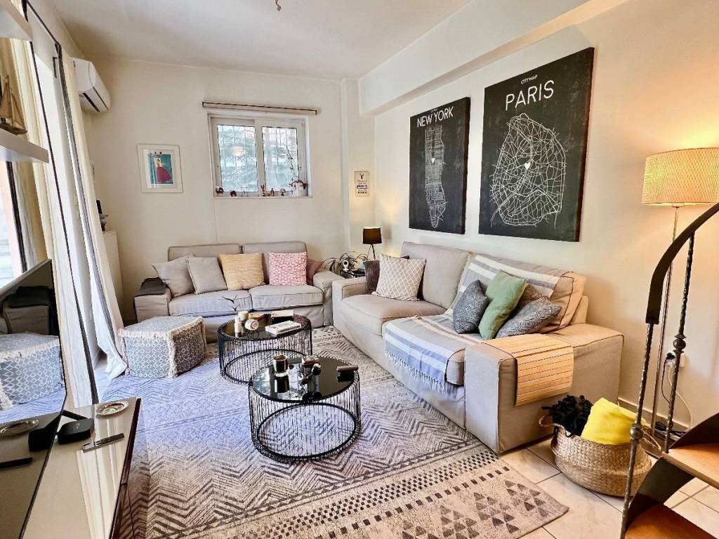 Marousi, 64 sqm, 1 bedroom maisonette for sale, perfectly distributed over 3 levels in a modern and well maintained building of 2004 and own parking space. There is theoretically space for a second car. The apartment is located in a green and friendly residential neighbourhood near Alsos Syggrou Park, just 1.1km distance to Marousi (M1) stop and close to Leof. Kiffisias. Independent gas heating, double glass windows, electric awnings and window screens, featuring an elevated ground floor with a living room and access to a relaxing balcony with awnings. A stairway is leading to the 1st floor, consisting a bedroom with access to a second balcony with beautiful view and 1 bathroom with a bathtub. Another stairway is leading to a bright and airy semi- basement, well lighted, consisting an open space kitchen/dining room equipped with all appliances (Whirlpool) and windows for circulation. 1 WC with space for a washing machine and a spacious common storage room. Alarm system. The apartment is equipped with wooden floor in the 1st floor and tiles in the elevated ground floor and semi-basement. The Electronic ID has been issued for a fast sale process. The apartment is rented until the 15.7.26 Code: 108 Attention Properties +30 6947126487 info@attentionproperties.gr YOUR DREAMS, MADE IN GREECE!