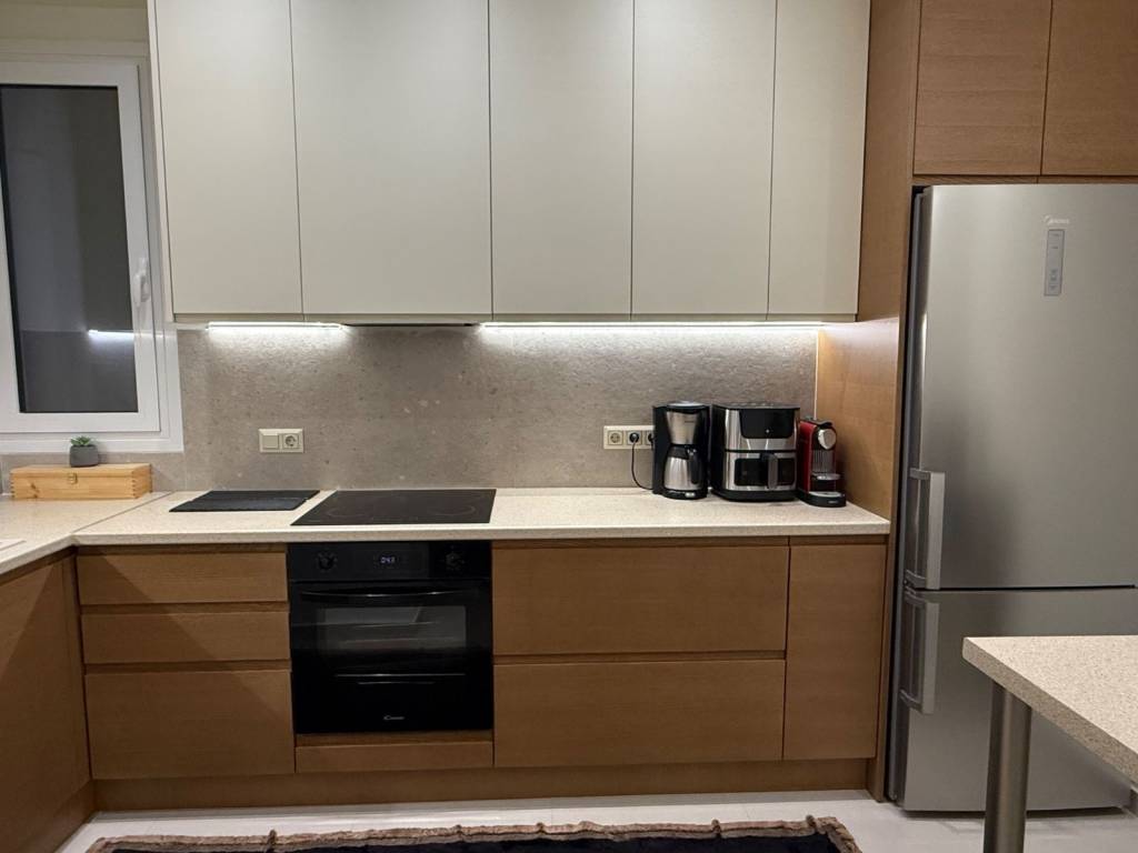 For sale is a bright, well-maintained, and fully renovated 107 sq.m. apartment, located on the ground floor of a two-storey family apartment building. Originally constructed in the 1970s, the property was comprehensively upgraded in 2025 with high-quality interventions, including new energy-efficient windows, completely new electrical and plumbing installations, a modern kitchen, new interior doors and a reinforced security entrance door, new floor tiles throughout, two spacious and elegant bathrooms (one with a shower and the other with a bathtub) fitted with top-quality materials and Italian faucets, as well as a brand-new solar water heater that ensures hot water 24 hours a day. This renovation substantially enhanced both the value and the long-term durability of the apartment. The residence comprises two particularly spacious bedrooms (with the possibility of creating a third), two bathrooms, a separate office, a bright living room, a large entrance hall, a dining area, and a kitchen that offers a sense of modern comfort and contemporary living. The apartment is fully dual-aspect, ensuring abundant natural light throughout the day. At the rear, it features a private patio, ideal for relaxation, coffee, or outdoor dining in a quiet and welcoming environment. Heating is central, oil-powered, providing efficiency, cost-effectiveness, and full user autonomy. There is also the option for the apartment to be delivered fully furnished, with modern appliances and high-quality furniture, allowing the buyer to move in immediately with no additional expenses. Indicatively, this includes a dining table with six chairs, a corner sofa measuring 3 x 2.5 m, a coffee table, two OLED televisions, a soundbar, a sofa bed in the first bedroom, a large double bed in the second bedroom, two washing machines, a large cooktop, an oven, a refrigerator, and a dishwasher. The property is located in a particularly quiet and family-friendly neighborhood, very close to the center of Athens and Syntagma Square—an area of significant archaeological interest, beautifully landscaped green spaces, and recreational facilities that greatly enhance quality of life. The location offers immediate access to public transportation, while the wider area is experiencing continuous development, strengthening both everyday living conditions and the future value of the property. This apartment represents an ideal choice for either owner-occupation or investment through long-term rental, combining comfort, quality construction, and an excellent location.