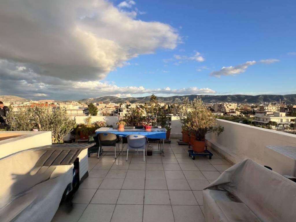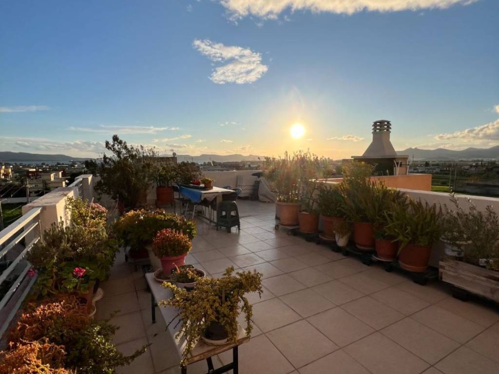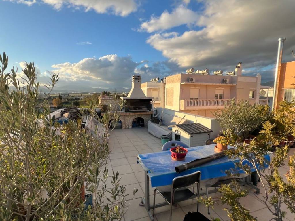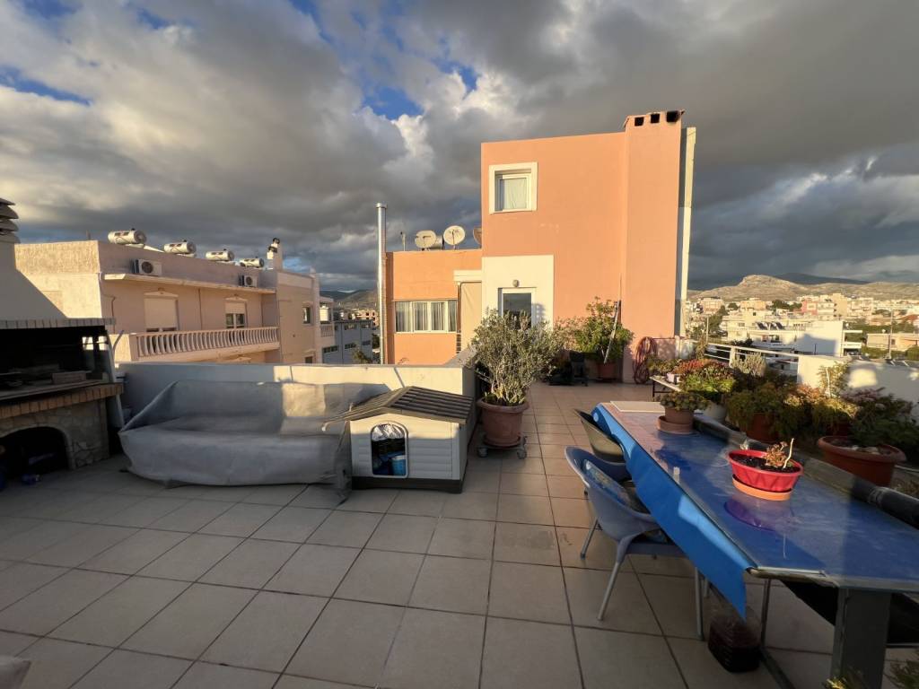 For sale is an excellent top-floor penthouse apartment (4th floor) with a total interior area of 88 sq.m., featuring an additional private roof terrace of 65 sq.m., located at Kanari & Kolokotroni 33, Aspropyrgos. The property enjoys easy access to public transportation, local market and essential services. The apartment is situated in a well-maintained building constructed in 2006, consisting of only 7 apartments, and is served by an elevator. It is dual-aspect (through apartment), exceptionally bright throughout the day and offers unobstructed, open views, making it a rare opportunity for the area. The interior layout includes two comfortable bedrooms with large built-in wardrobes, an open-plan living room, dining area and kitchen, an entrance hall, one bathroom and an additional guest WC. The functional layout makes the property ideal for both family living and discerning buyers. Additional features include a mezzanine (loft-style internal space), storage room, and a private parking space. The apartment is equipped with autonomous oil heating, fireplace, air conditioning, solar water heater, alarm system, awnings, aluminum window frames with electric shutters, security entrance door, and tiled flooring throughout. The property is in excellent condition, both internally and externally, requiring no renovation, and is ready for immediate occupancy. Asking price: €170,000 ❌ Purchase with bank loan is not accepted Offered through a real estate agent.