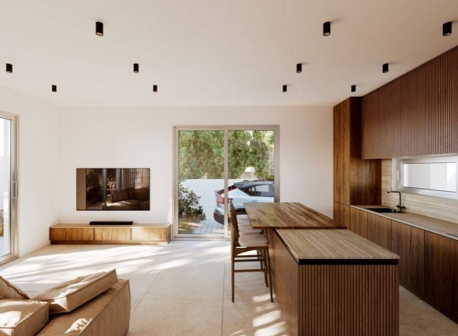 Korakies - Akrotiri For sale from the plans in a state-of-the-art complex of 4 independent detached houses, the construction of which will begin soon, and is supervised by a well-known construction company, a modern, highly aesthetic independent detached house of 128 m2 within a fenced and tree-planted plot, in a prime location in the “Korakies” area in Akrotiri, Chania, just 10 minutes by car from the cosmopolitan, historic old town and the old port of Chania and 8 km from the international airport “I. Daskalogiannis”. The residence is developed on two levels and consists of: On the first level there is a comfortable open-plan area with a living-dining area, a very bright and functional kitchen, a bathroom, direct access to large terraces and the exclusive courtyard with the private swimming pool. On the second level there are three comfortable bedrooms, one of them a master with an en suite bathroom, an additional bathroom, direct access to balconies with wonderful views of the surrounding area. The construction of the residential complex is distinguished by its simple and modern aesthetics with interesting architectural elements regarding the facades with colors in earthy tones, the large openings, the positioning of the complex which ensures the utmost privacy of the residents by offering autonomy of entry, and protected private spaces and swimming pools, things which, in conjunction with the architect's intense artistic touches, adorn the villa both internally and externally, offering a highly refined result. In addition, each residence features:Independent heating with heat pumps Alarm system Solar water heater for 24-hour hot water supply Aluminum frames with thermal break, double energy glazing & screens Security entrance Video door phone Private swimming pool (for the 2 properties of the complex) Separate section of courtyard for exclusive use Parking space Storage space They are ideally suited for permanent residence. Public utilities and other amenities are literally at your feet.The sandy organized beach of Kalathas is a 5-minute drive away.
