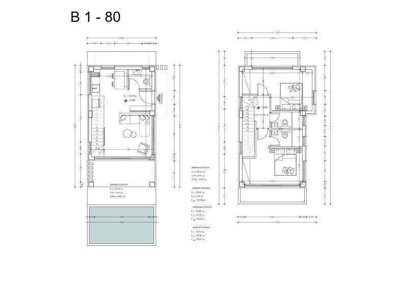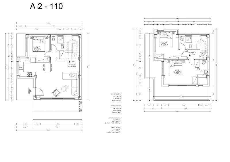 • 6 Two-story residences of 82.54 m², consisting of a living room with kitchen, 2 bedrooms, 1 of which is a master bedroom, and 2 separate bathrooms.