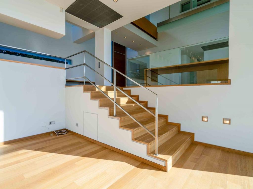 A truly exceptional villa of refined aesthetics, offering a total living area of 590 sq.m., set on a 650 sq.m. corner plot in a privileged and tranquil neighborhood of detached residences. Adjacent to a natural park and enjoying unobstructed panoramic sea views, this residence was designed and constructed by one of the most renowned architectural firms, combining clean contemporary lines with high-specification materials, absolute privacy, and outstanding functionality. The villa is arranged over three levels and stands out for its ergonomic layout and abundant natural light, thanks to expansive floor-to-ceiling glass surfaces that allow sunlight to flow throughout the spacious living and kitchen areas. The ground floor features an impressive entrance hall, an elegant dining area, a large living room with fireplace, a family lounge, a fully independent and well-appointed kitchen with its own storage room, as well as a guest WC. On the first floor, the impressive grand master bedroom offers an en-suite bathroom with jacuzzi and a generous walk-in wardrobe. Two additional master bedrooms, each with en-suite bathrooms, complete this level. All bedrooms enjoy large balconies and uninterrupted sea views. The semi-basement level includes a staff room with en-suite bathroom, an independent guest suite also with en-suite bathroom, a spacious playroom with home cinema installation and Dolby Surround system, a laundry room, and additional auxiliary spaces. The outdoor areas are equally striking, featuring a large overflow swimming pool, wooden deck, BBQ area, and a beautifully landscaped garden that surrounds the villa on all sides, creating an ideal setting for relaxation and entertaining. The property is equipped with a private elevator suitable for wheelchair access, autonomous underfloor heating, independent central air conditioning, smart home system, a four-car garage in tandem, alarm and fire detection systems, central sound system on the ground floor, internal intercom, reinforced security door, and a rainwater collection tank. Originally built in 2004, the villa was fully renovated in 2025 by the same architectural firm responsible for its original design, achieving exceptional results. This is a rare residence that perfectly combines luxury, comfort, and quality of life, ideal for families seeking a truly distinctive home. Location: Voula enjoys a privileged position on the Athenian Riviera, offering immediate access to all everyday amenities and located just 30 minutes from the historic center of Athens. Unique Characteristics: Voula is a vibrant yet calm and safe residential area, home to stylish boutiques, wine bars, cafés, restaurants, and a beautiful beach. It also features a well-equipped public hospital and a lively commercial center with supermarkets, gyms, banks, while being in close proximity to international schools. Accessibility: The area is well connected by public bus services to the city center and to Glyfada, the nearest major shopping and entertainment hub. It is approximately 20 minutes by car from Athens International Airport and just 10 minutes from the landmark Ellinikon redevelopment project. Investment Potential: As with most areas of the Athenian Riviera, property values in Voula demonstrate strong and consistent investment potential, offering attractive long-term returns.