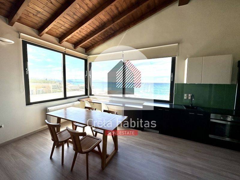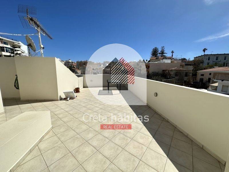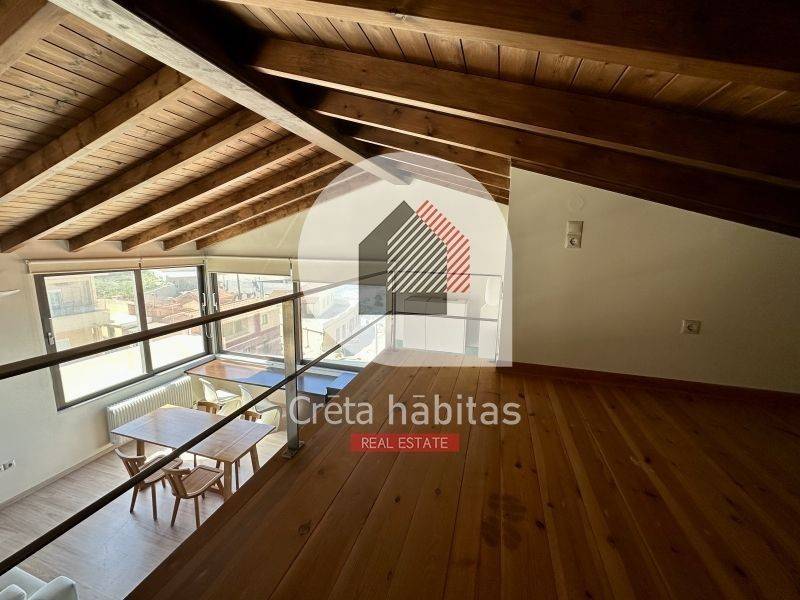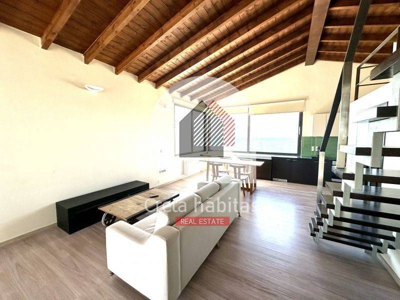 Long-term penthouse airy third floor apartment with 1 bedroom and attic for rent in Halepa Chania just 50 meters from the sea. Available furnished and with electrical appliances. It includes a double bed, dining table, sofa, 55inch tv, desks and in the kitchen a refrigerator, oven with hotplates and microwave oven. It has autonomous oil heating and air conditioning. It offers an amazing sea view from the windows as well as the large terrace.