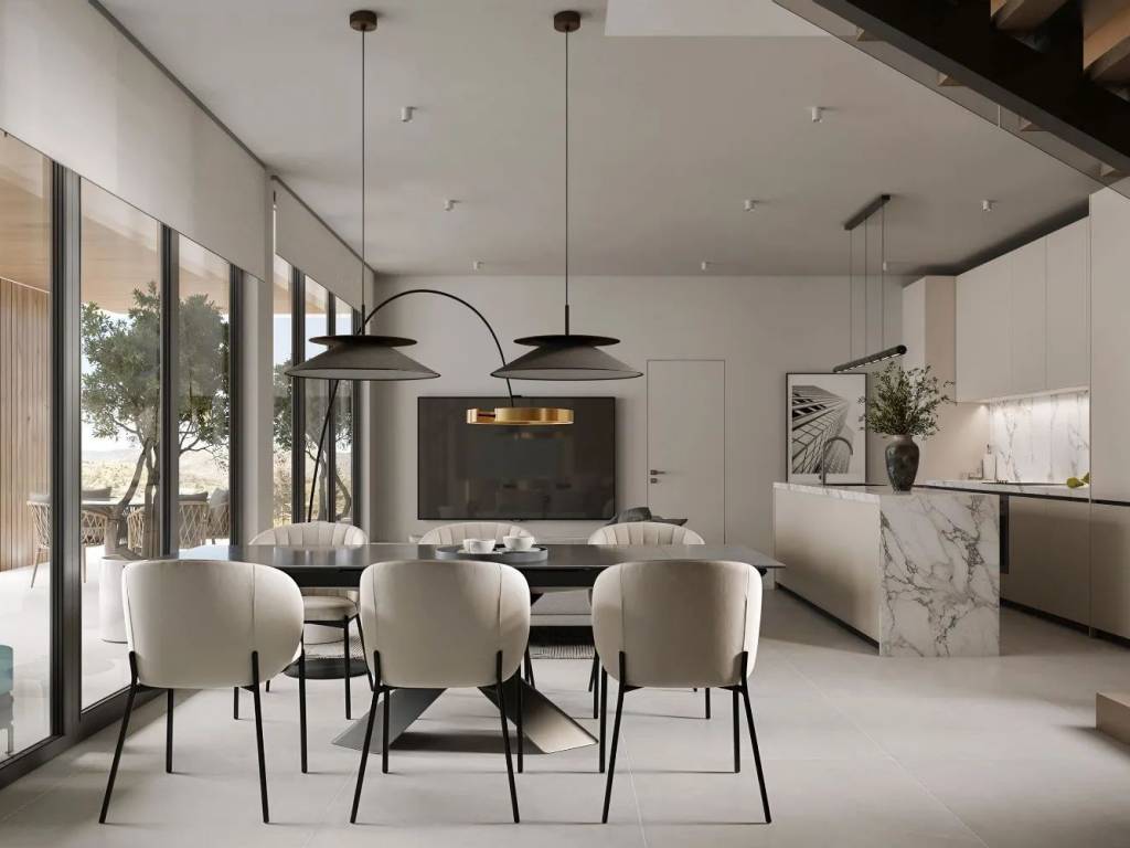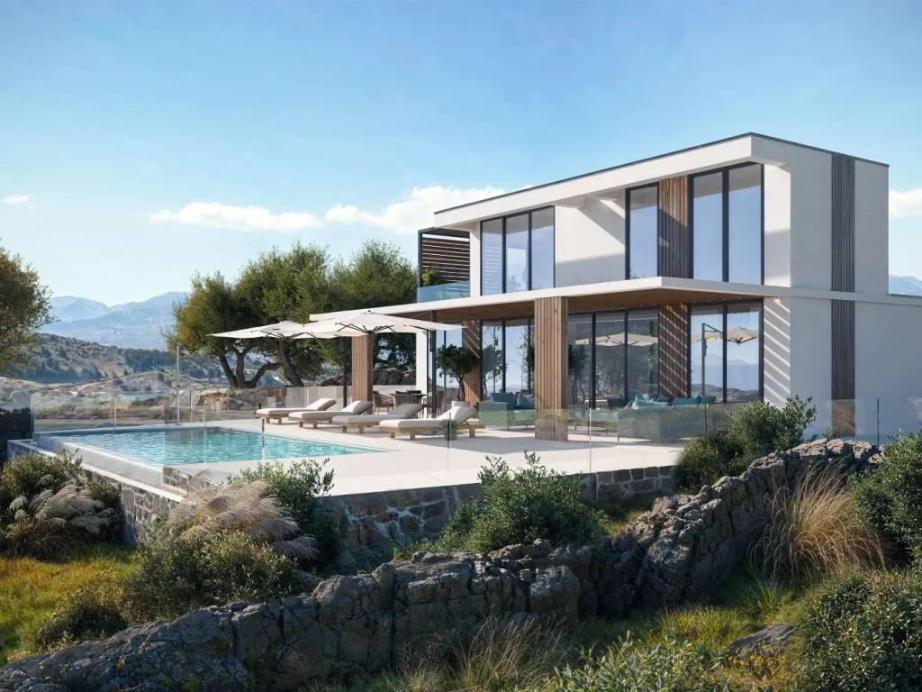 This luxury Villa is set on a plot of 678 sqm . The exterior of the house is spacious with a 150 sqm patio, a 53 sqm terrace and an 11 sqm veranda balcony on the second floor. The highlight is a large infinity pool – 36 sqm, perfect for relaxing with panoramic views. The residence is delivered move-in ready, complete with high-end designer indoor and outdoor furnishings, including outdoor kitchen and branded appliances. Villa attracts with a stylish open plan layout complete with a fully equipped modern kitchen, comfortable dining area and living room. Large glazing with sliding doors to the terrace with a cozy outdoor area create a sense of relaxation and luxury. Grand Double-Level Villa features three elegant en-suite bedrooms, offering plenty of room for both family and guests. Energy-efficient home boats triple-glazed windows with A+ energy certification (RU47) that ensure low utility costs and a peaceful, temperature-controlled environment, sound insulation. The location in Kefalas gives the perfect escape from the hustle and bustle of everyday life but is still within 5 minutes of modern conveniences (grocery shop, medical clinic). Grand Double-Level Turnkey Villa features large format Spanish tile with high anti- slip resistance, stylish modern pivot doors, sliding doors with retractable screens, artificial stone finishes and many other elements that emphasize premium design, while still offering high functionality Property Highlights 3 En-suite Bedrooms + Guest WC Bright open-plan kitchen, dining & living area with panoramic sea views Infinity Swimming Pool Landscaped Gardens & Spacious Terraces BBQ Area for Outdoor Living Private Parking Prime Location Minutes from local shops, taverns & cafés Just 5-6 minutes from Vamos city center Medical Clinic in Vamos In charming Kefalas – a historic hilltop village with panoramic views Sliding doors and screens on all areas and bedrooms Screens Interior Designed and Decorated Included Appliances included Schools in the area
