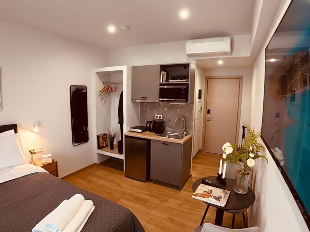 Excellent investment opportunity in Dafni, with a stable and increasing return. The investment’s return starts at 6% in the first year and is expected to reach 6.54% by the end of the decade, offering an attractive and long-term profitability for investors. The building consists of six levels (basement, ground floor, mezzanine, 1st, 2nd, 3rd floor) and includes a total of 57 fully equipped and serviced apartments. Each floor has 19 apartments with balconies and an average area of 23 sq.m. each while amenities are provided to the tenants such as roof garden, laundry room and luggage storage. Apartment 117 with a living area of 17,97 sqm and a balcony of 1,30 sqm is located on the 1st floor and is north-west oriented. The open plan layout of the apartment offers a fully equipped space with a comfortable bed, desk, kitchenette and a separate toilet. The flooring is vinyl, offering durability and ease of maintenance. The heating and cooling system is centralized VRF, providing efficient temperature regulation throughout the apartment while the hot water (ZNX) system is also centralized, using heat pumps. Tenants have the option of accessing the apartment either by staircase or lift. This is a new, innovative and pure investment product, which offers resale of the property in a short period of time and with a high ROI. The property has a smart home system (Smart Home) as well as certification for short term accommodation and all fire and health standards. Main points of the investment : - 100% occupancy all year round - professional management of the apartments - no utility bills - no management costs - high income collection from students and young professionals Key location : - just 400 m. from the metro station "Agios Ioannis" - 500 m from the metro station "Daphne" - 370 m from the academy of Athens Gymnastics Academy (TEFAA) - 75 m from cinema - 170 m from supermarket - 3 km from the center of Athens (Syntagma) Location: Dafni is a municipal unit of the Municipality of Dafni-Ymittos and borders the areas of Nea Smyrni and Neos Kosmos. Unique Features: It is one of the smallest municipalities in Attiki. Dafni was one of the first areas of the southern suburbs to have its own metro line. The area is a few kilometers away from the center of Athens and is home to an active commercial pedestrian area with a number of restaurants. Also the Athens Metro Mall, a great shopping and entertainment center, is also located in a close proximity. Moreover, the Athens Gymnastics Academy (TEFAA) is located within the administrative boundaries of Dafni, and as a result a large number of students choose the area for their residence. Accessibility: The area of Dafni is served by many bus and trolley lines as well as Line 2 of the Athens Metro. Investment potential: The area is just kilometers away from the center of Athens, an area that always has great interest from buyers with guaranteed returns on investment.