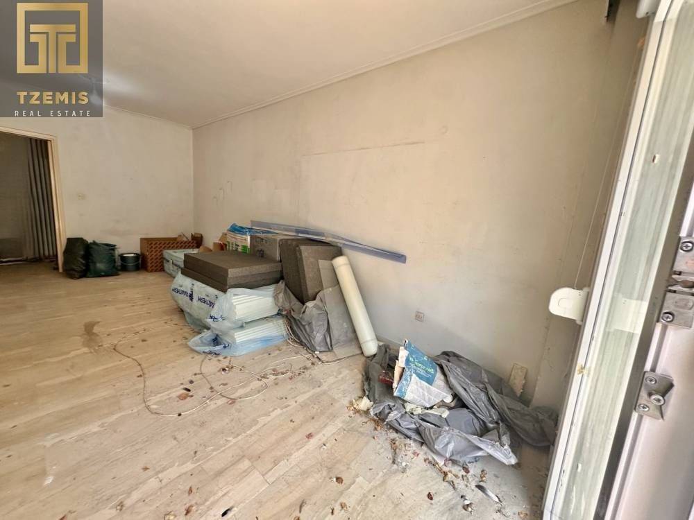 The property consists of 2 bedrooms, open-plan living room/kitchen, and bathroom. Additionally, it features an elevator, synthetic window frames with double glazing, security door, and wooden flooring. The apartment requires complete renovation.