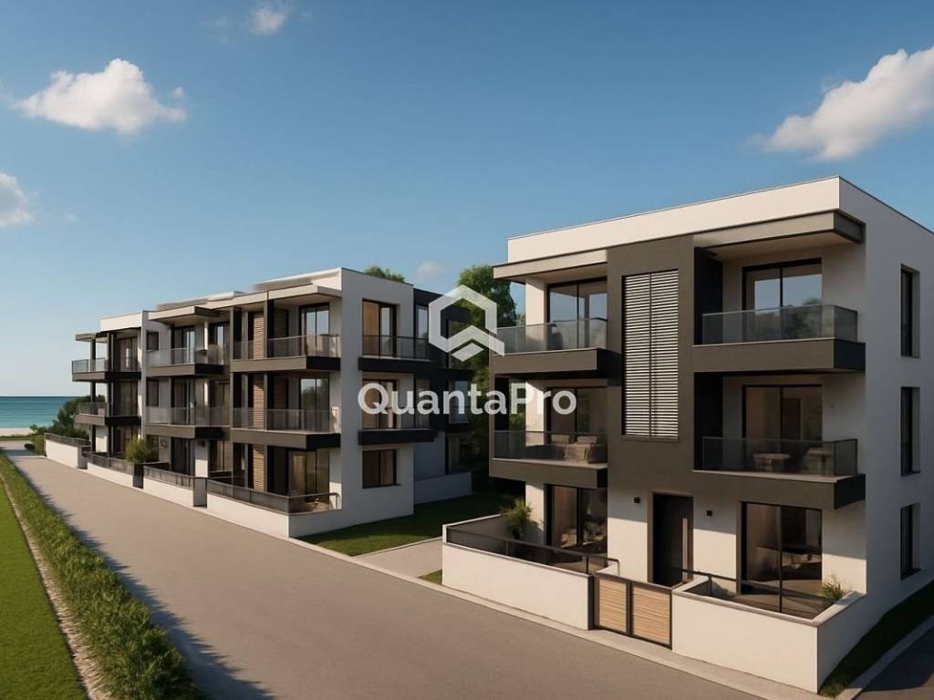 OLYMPUS SEA VIEW is a modern luxury apartment complex located directly on the seafront in Neoi Epivates, Thermaikos, Greece. The project is designed for comfortable year-round living as well as for investment purposes, offering immediate access to the beach and all daily amenities. The complex consists of three residential buildings, each developed over four levels. The total built area of the project is 1,560 square meters, situated on a land plot of 1,100 square meters. In total, the complex includes sixteen apartments, eight of which are two-level maisonettes. Every apartment features a private balcony, while the sea view is either direct or side, depending on the building and floor level. Each building is arranged with two apartments on the first level and two apartments on the second level. The third level consists of two maisonettes, which are extended on the fourth level with attic spaces. Every apartment is allocated one private parking space, which is included in the purchase price. The construction quality meets high technical and safety standards. The buildings are constructed with high-strength C30/37 marine-grade concrete, commonly used in yacht marinas, providing enhanced durability and resistance to moisture. The structure offers increased seismic resistance, along with advanced sound, water, and thermal insulation. Thermal insulation bricks with special additives are used throughout the construction. Aluminum frames are installed for all windows and balcony doors. Each apartment is connected to a natural gas heating system with radiators, and solar panels are installed to improve energy efficiency. The location of the complex is one of its key advantages. The beach is only five meters away, while shops, cafés, and restaurants are located just ten meters from the property. A school can be reached within one kilometer. Thessaloniki International Airport is approximately eleven kilometers away, and the city center of Thessaloniki is twenty kilometers from the complex. The COSMOS shopping center is located fourteen kilometers away, while IKEA and PRAKTIKER are reachable within twelve kilometers. The apartments are offered for sale during the construction phase, with final delivery scheduled for December 31, 2025. Buyers have the option to purchase without commission and benefit from an interest-free installment payment plan over a period of up to one year, until construction completion. Prices range from 3,500 to 5,500 euros per square meter, depending on the building and floor level.