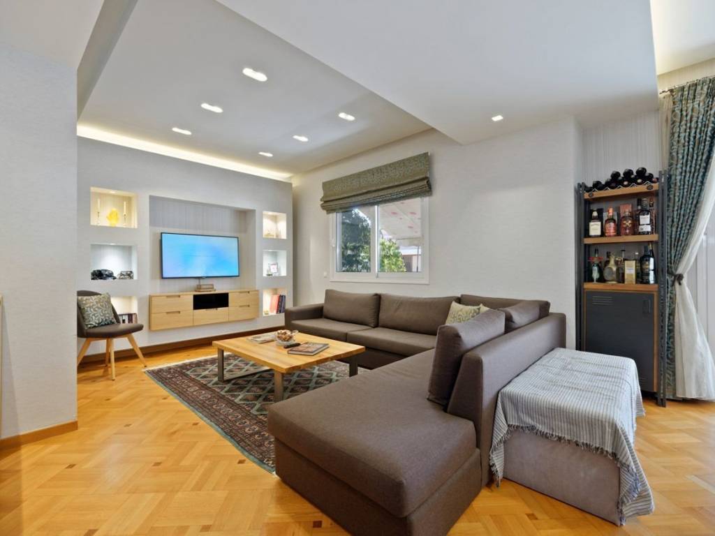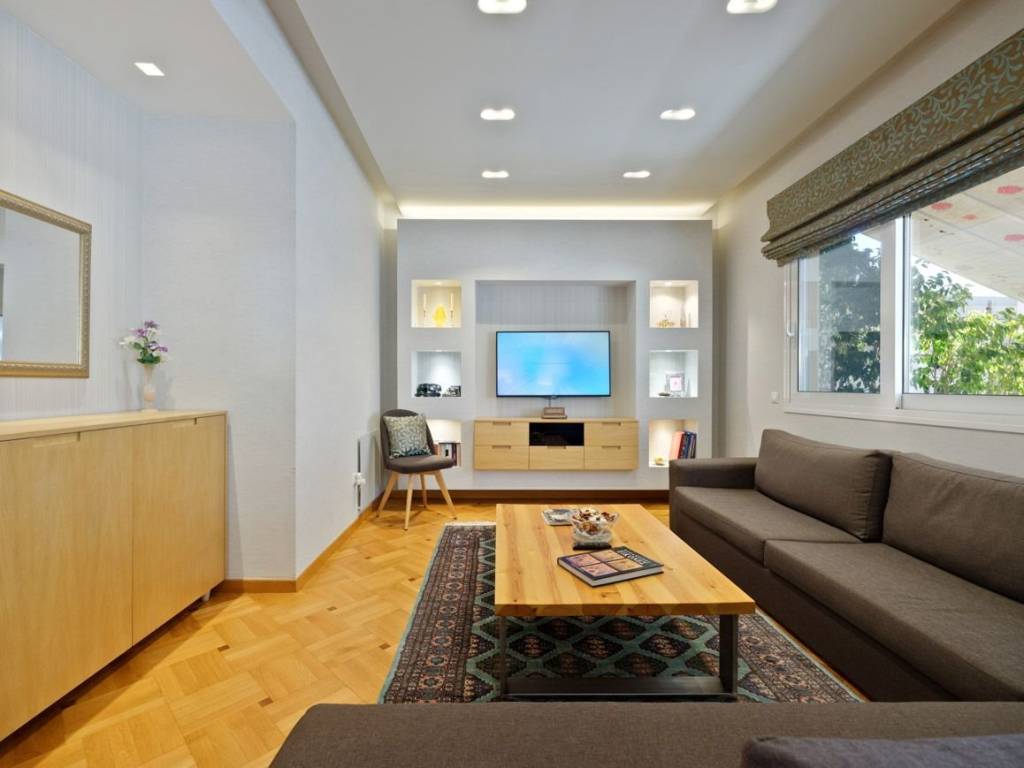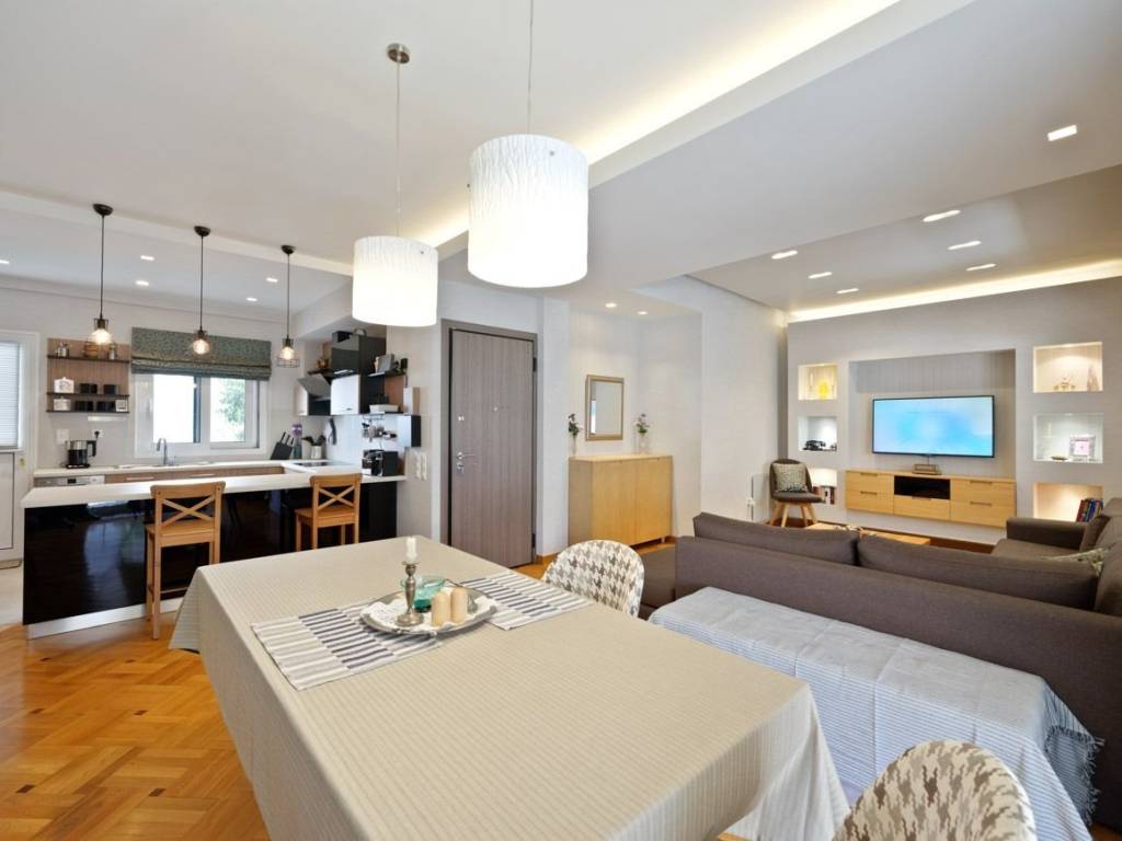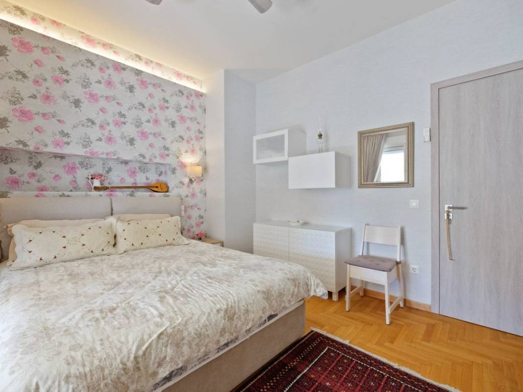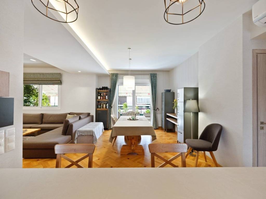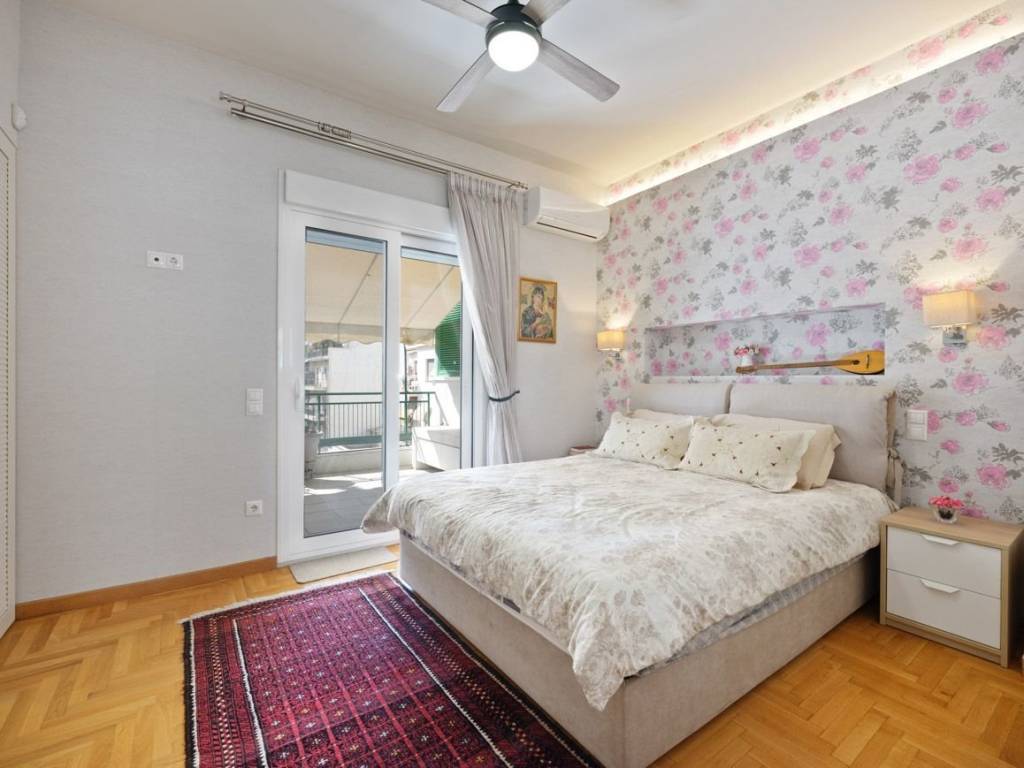 We welcome you to a 4th floor beautifully renovated penthouse of 90 sq.m. in Ampelokipi. We enter an elegant living room. The warm silk handmade carpet, the expensive curtains, the hidden lighting, the luxurious handmade wooden furniture put us in a unique sense of peace. The kitchen is almost open plan with a counter separating it from the living room. There we find built-in Bosch electrical appliances. Moving forward we find a WC and a bathroom. The large bright bedroom has a built-in wardrobe. The children's room is spacious with beautiful colors. The house has wooden floors in the living room and bedrooms, giving it warmth and timeless elegance. Tiles cover the kitchen and bathrooms. The property has autonomous heating and cooling with very low consumption panels, solar water heater and 2 air conditioning units. It was renovated in 2021, for private use, even changing the plumbing and electrical and was furnished with high quality furniture, throws, carpets, curtains, awnings, alarm system. The price includes everything shown in the photos as well as a storage room of approximately 6 sq.m. The apartment, due to the absence of the owners abroad, is in excellent condition, without any damage. We also note that it is located in an excellent location, just a three-minute walk from the Panormou metro station. The great advantage of the property is the terrace of approximately 30 sq.m., with self-watering plants that seem to protect privacy by creating a green fence. Wherever you choose to sit, you feel like you are being welcomed by a small, peaceful garden that sprouts up between the apartment buildings. AMPELOKIPOI Location: Ampelokipoi is relatively close to the city center of Athens. It is situated in the northern part of Athens and is considered part of the central municipality of the city. The distance from Ampelokipoi to the heart of Athens is approximately 4-5 kilometers. The area takes its name from the vineyards that once existed on this spot during earlier times. Today, it is a densely populated and diverse neighborhood known for its mix of residential and commercial spaces. Unique features: Ampelokipoi is a middle-class neighborhood with a cosmopolitan character and some of its squares, such as Mavili Square, are lively with many cafes and restaurants. The area enjoys everything the city has to offer, all within walking distance and very close to all public transport. Accessibility: The area is accessible by various means of public transport. It is served by various bus and trolley lines, making it easy to get to the city center and other neighborhoods. In addition, the Panormou and Ambelokipi metro stations connect the area to the Athens metro network, providing rapid transport options for workers and visitors. Investment potential: Ampelokipoi is a downtown neighborhood that enjoys a lot of interest from buyers.