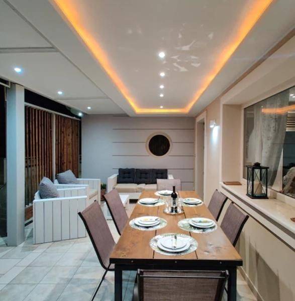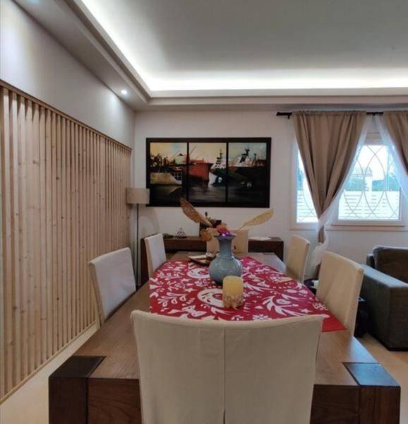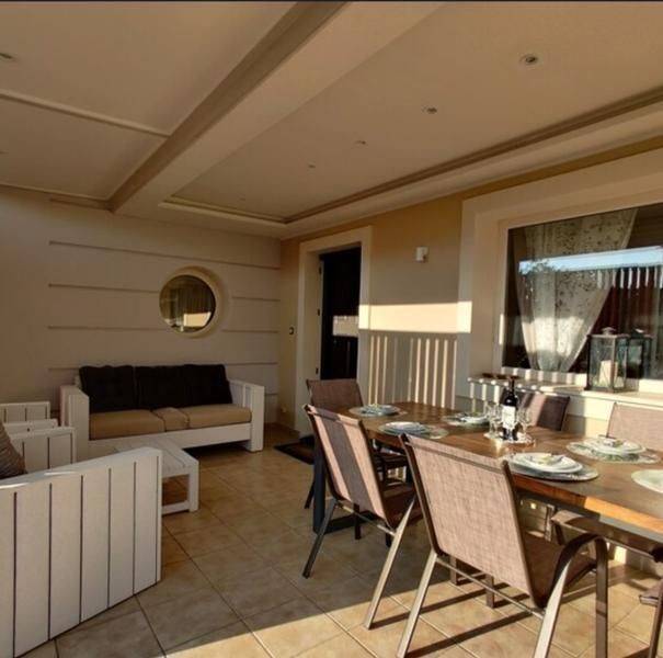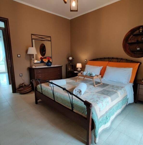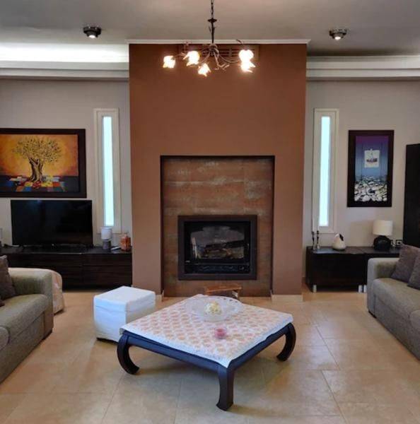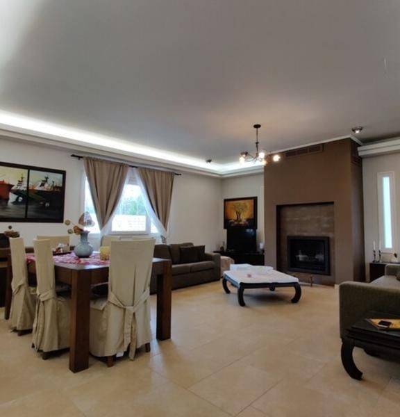 Achillio, Kynopiastes - Apartment 157sqm fully furnished, excellent condition, energy class A, living room, kitchen, 2 bathrooms, heating type: autonomous (oil), parking, quiet, dual aspect apartment, luminous, corner, unobstructed view view, frontage, painted, drop ceiling, solar heater, boiler, fireplace, balconies, large balconies, tents, garden, built in appliances, aluminum frames, double glazed windows, door screen, without common charges, secure door, luxurious, barbeque, residential zone, access from asphalt.